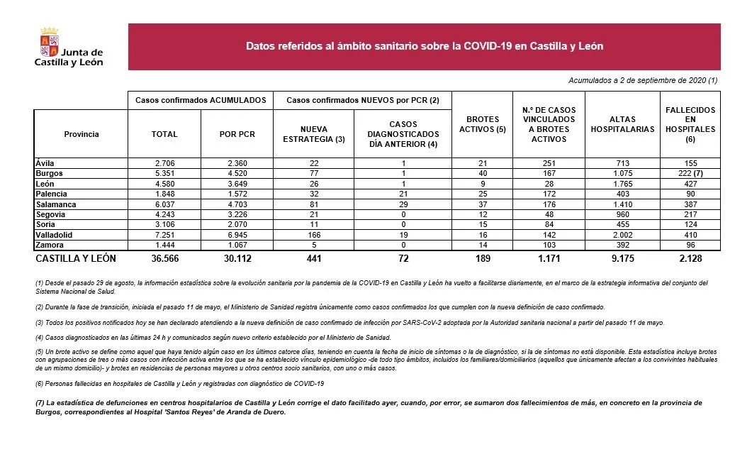Castilla y León notifica hoy 441 nuevos casos de la enfermedad Covid-19, con lo que su número actual acumulado es 36.566; de esa cifra, 30.112 han sido confirmaciones través de pruebas PCR.