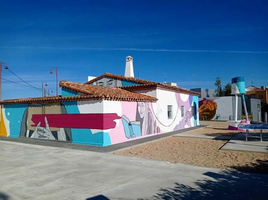 El artista Caín Ferreras ha transformado con sus creaciones el Área Joven de Santa Marta de Tormes, que se ha transformado y luce nueva imagen exterior. Se trata de varias pinturas de gran formato que recubren la pared de la fachada del edificio principal, la pared de la cancha de baloncesto y la del depósito.