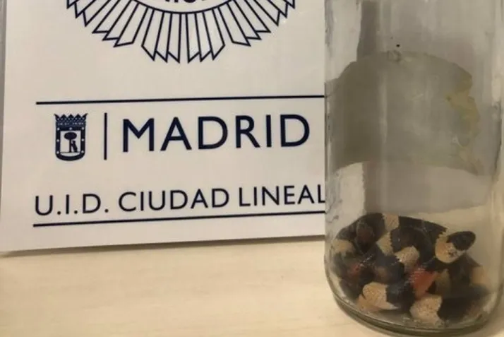 Agentes de la Policía Municipal de Madrid capturaron ayer de madrugada una serpiente 'rey escarlata', muy similar a la coral, en un garaje del distrito de Ciudad Lineal (Madrid), ha informado a Europa Press una portavoz del Cuerpo Local.
