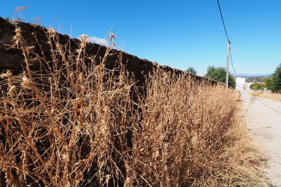 6. Siega anual ?ojo: en junio, no en septiembre? de plantas herbáceas en el camino de El Bosque y en los prados (fotos14 y 15, tomadas a finales de agosto), verdadero peligro como combustible en incendios fortuitos o intencionados. El pasado 31 de julio, los invitados a la presentación de obras en el BIC pudieron dejar sus vehículos en un polvoriento secarral junto a la tapia de El Bosque, rodeados de cardos y matojos muertos ¡de talla humana!: ¿se imaginan lo que hubiera podido ocurrir con una colilla mal apagada?
