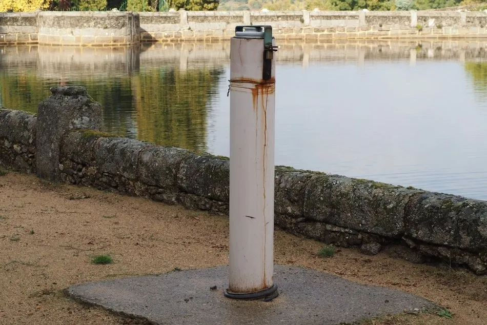 2. Vigilancia mediante inspecciones periódicas de dicho sistema hidráulico para evitar deterioros o pérdida de caudaly, en concreto, desarenado bimensual del dispositivo correspondiente (foto 6), así como vaciado, extracción de fangos e inspección bianual del estanque mayor, lo mismo con periodicidad quinquenal en el estanque del Tinte, inspección y limpieza bianual de las fuentes y limpieza regular de arquetas y canalizaciones, incluida la regadera de alimentación desde la sierra.