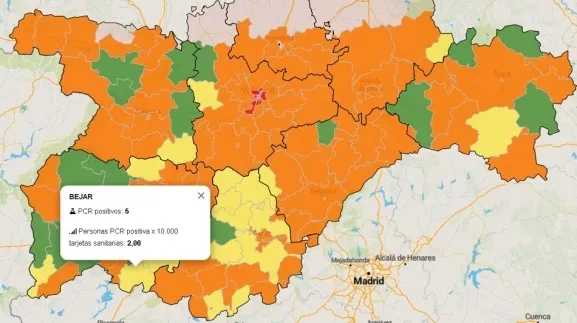 Poco ha durado la zona de salud de Béjar en el color verde del mapa de los rebrotes de la provincia de Salamanca y un día más los datos oficiales de la situación epidemiológica del coronavirus en Castilla y León marcan un ascenso a cinco PCR positivos en los últimos siete días, 2,86 personas positivas por PCR en los últimos 7 días por cada 10.000 tarjetas sanitarias.