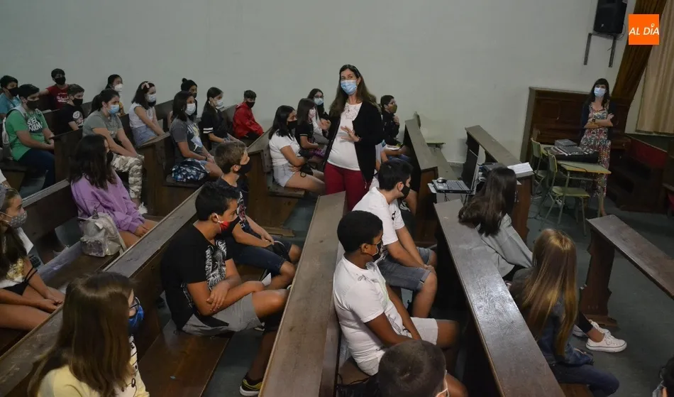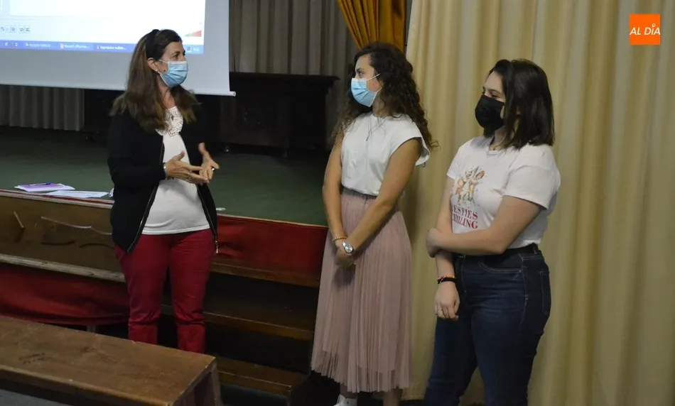 Precisamente, las medidas de protección centraron buena parte de la charla de bienvenida que les dieron en el salón de actos la directora del IES, Pepi Martín Choya, y la Jefa de Estudios, Nuria Rodríguez, justo después de que dos alumnas recién graduadas en el Fray Diego les explicasen cómo había sido su etapa en el centro y todo lo que van a vivir.
