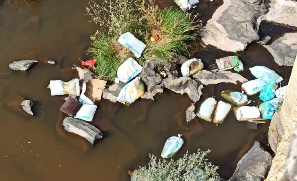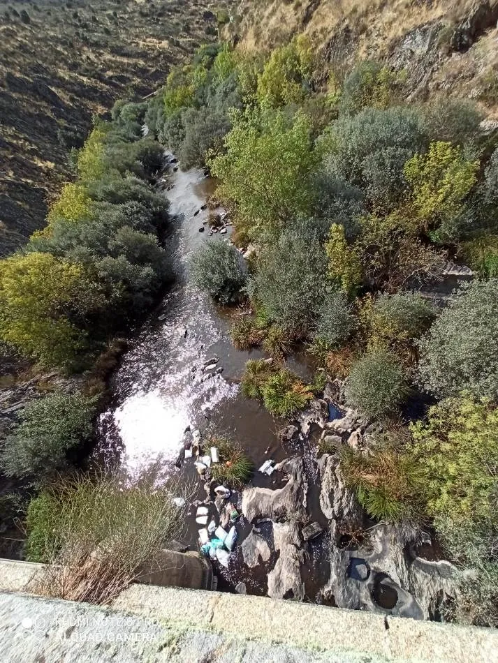 Denuncian la aparición de varios sacos con enseres en el cauce del Águeda