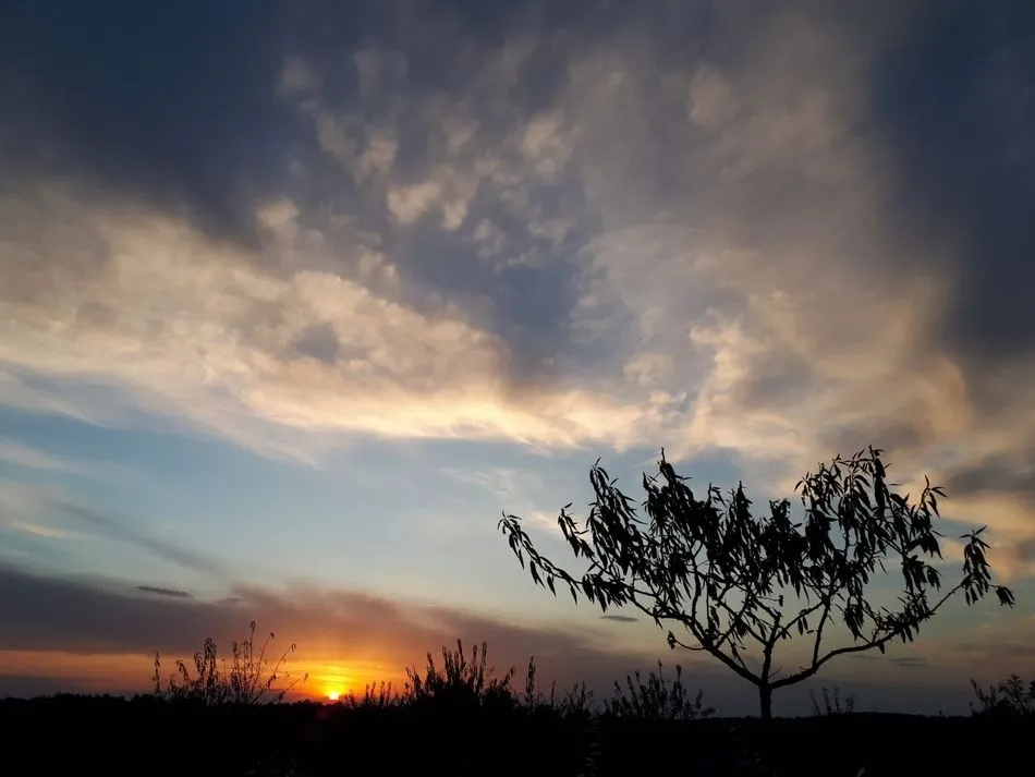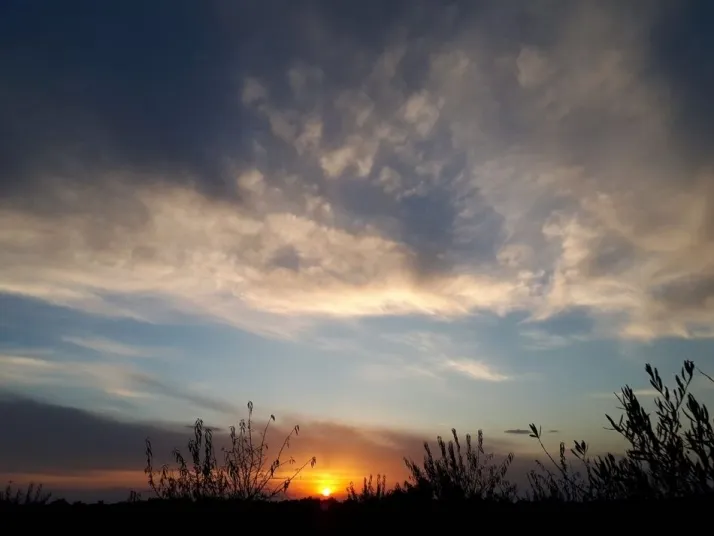 Imagen tomada el domingo 13 de septiembre con el Sol ocultándose al atardecer e iluminando las nubes que cubrían el cielo en la localidad de Lumbrales. Foto: María Ángeles Pérez