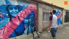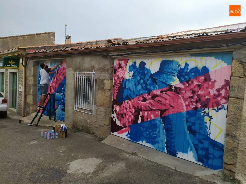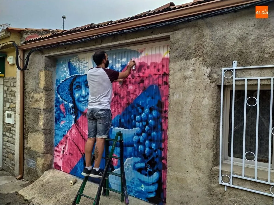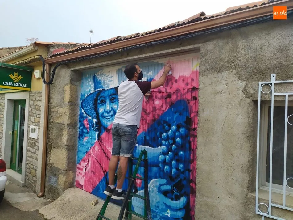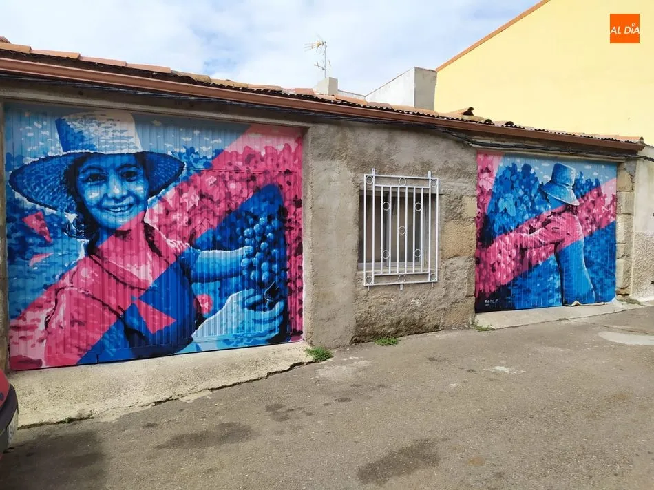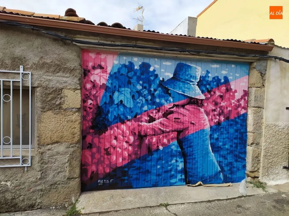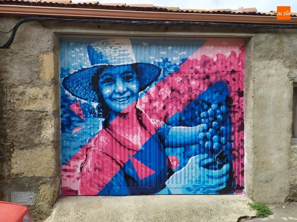 Y por último, el muralista navarro Eneko A. T. rendía este viernes ?un homenaje a la mujer en la vendimia?, señalaba el alcalde de Pereña Luis Rodríguez, una obra dividida en dos grandes portones de cochera y que cierra el Certamen de Pintura Mural EnPereñArte 2020.
