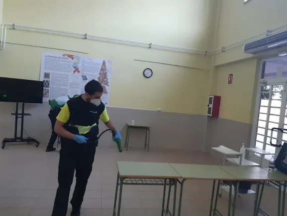 Una empresa de desinfecciones electrostáticas ha realizado estos trabajos en la localidad