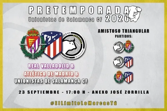 Unionistas jugará su próximo partido de preparación a modo de triangular con los filiales del Valladolid y el Atleti. El evento tendrá lugar en el Anexo del José Zorilla, sin la presencia de público, el próximo 23 de septiembre.