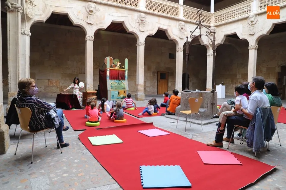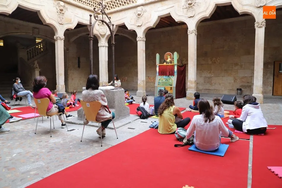 El Patio de la Biblioteca en la Casa de las Conchas acogía este martes el teatro de títeres: "Historias de un tal Cristóbal" de Alauda Teatro. Una función, destinada al público infantil a partir de títeres de guante, que recoge la tradición del famoso Don Cristóbal, rescatado, en su momento, por García Lorca en sus farsas para títeres.