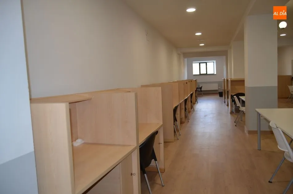 La nueva sala de estudio tiene capacidad para 40 personas, aunque ahora el aforo estará limitado a la mitad, por las medidas contra la Covid. El aula está dotada de wi-fi, se han cambiado las ventanas para proporcionar insonorización, ya que la sala da al patio interior de la Plaza del Mercado, se han pintado las paredes y reforzado la iluminación, y se ha puesto suelo de tarima, además se han cambiado puertas y está dotada de servicios junto a la puerta de entrada.