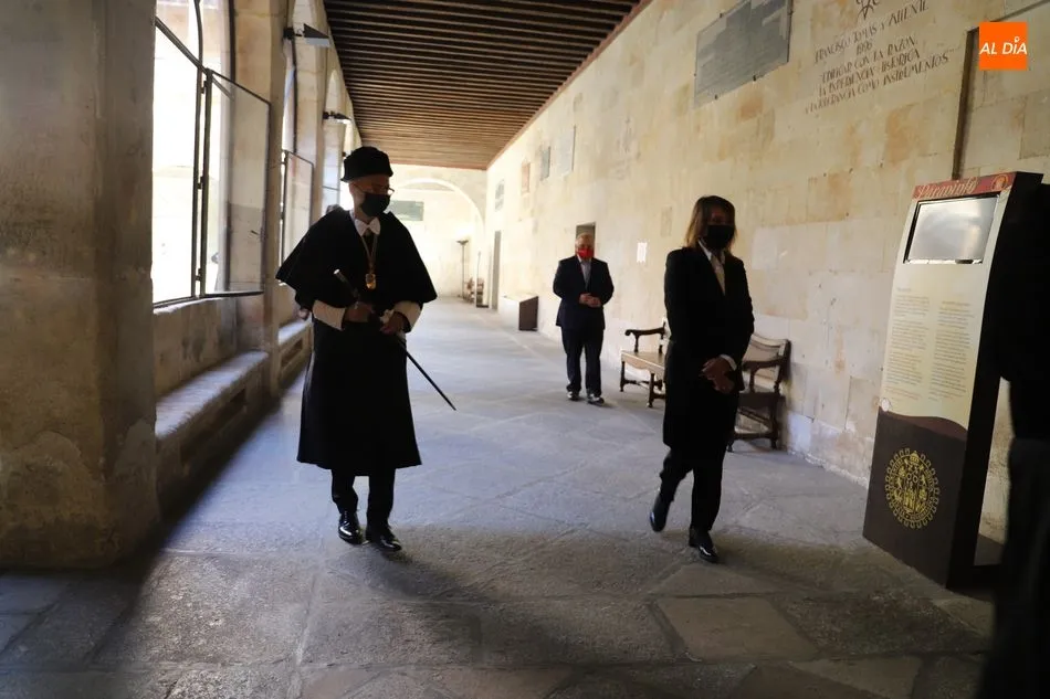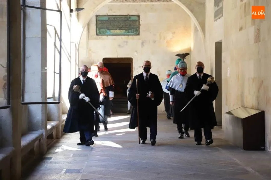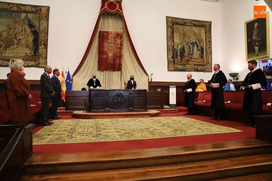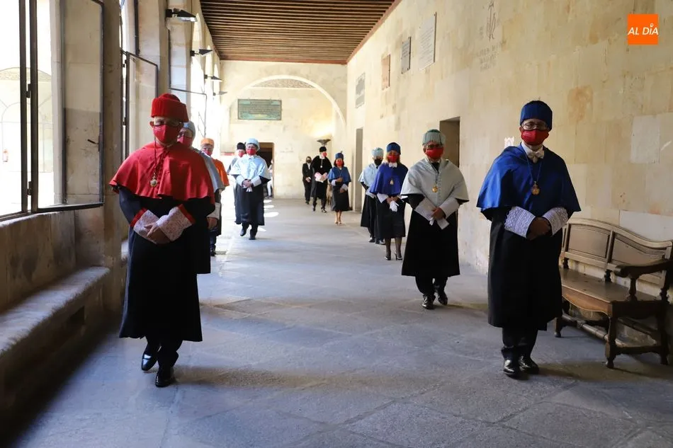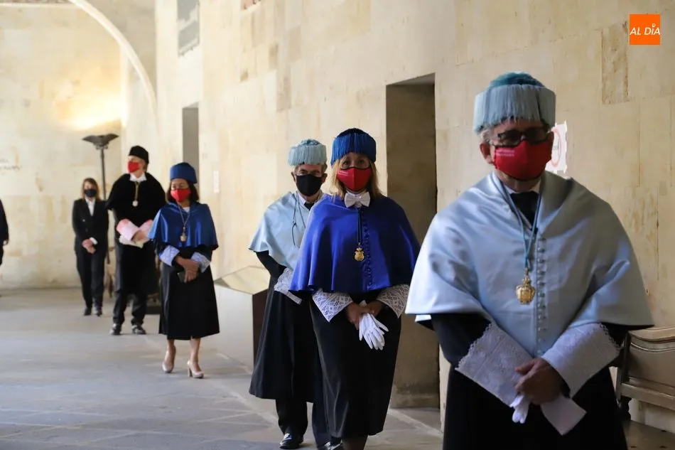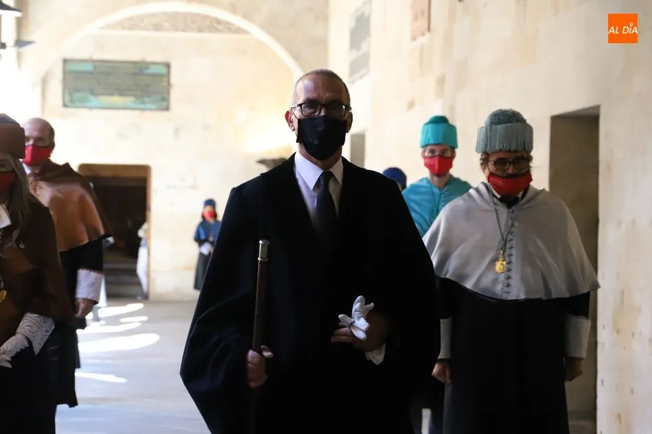 Previamente, el secretario general de la Universidad de Salamanca, Fernando Almaraz, dio lectura a la memoria del curso anterior 2019-2020, que definió como el de la ?resiliencia?, palabra que resume ?el esfuerzo de adaptación de toda la comunidad universitaria ante una situación de adversidad desconocida?.