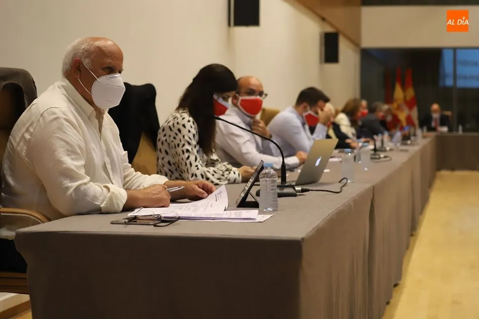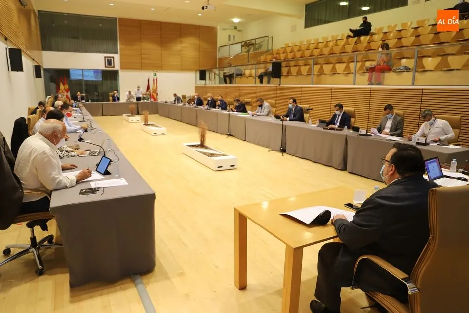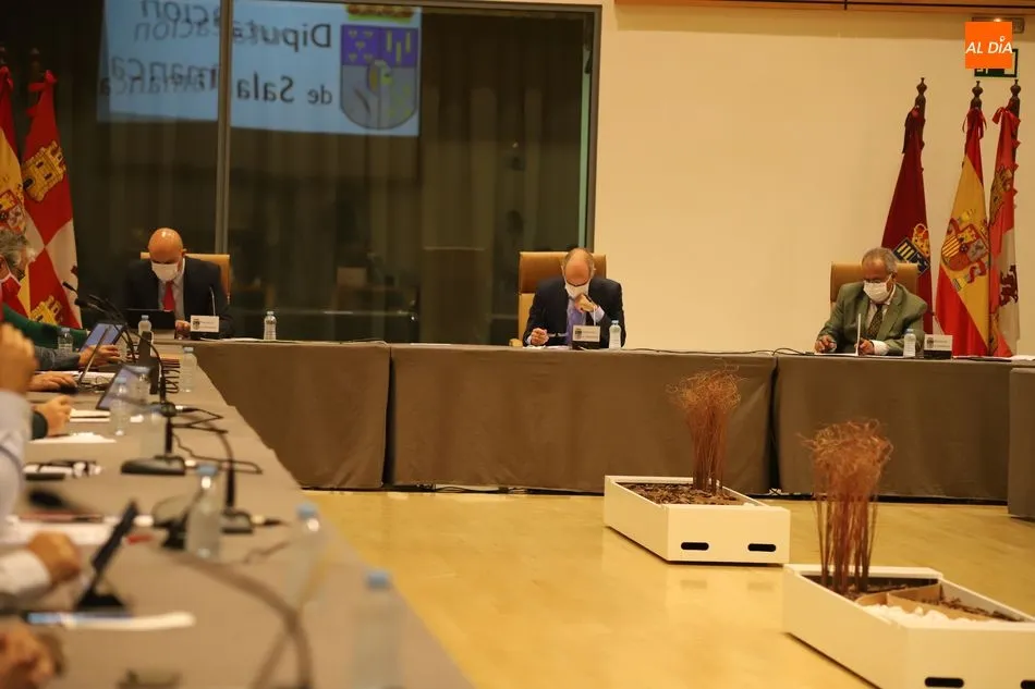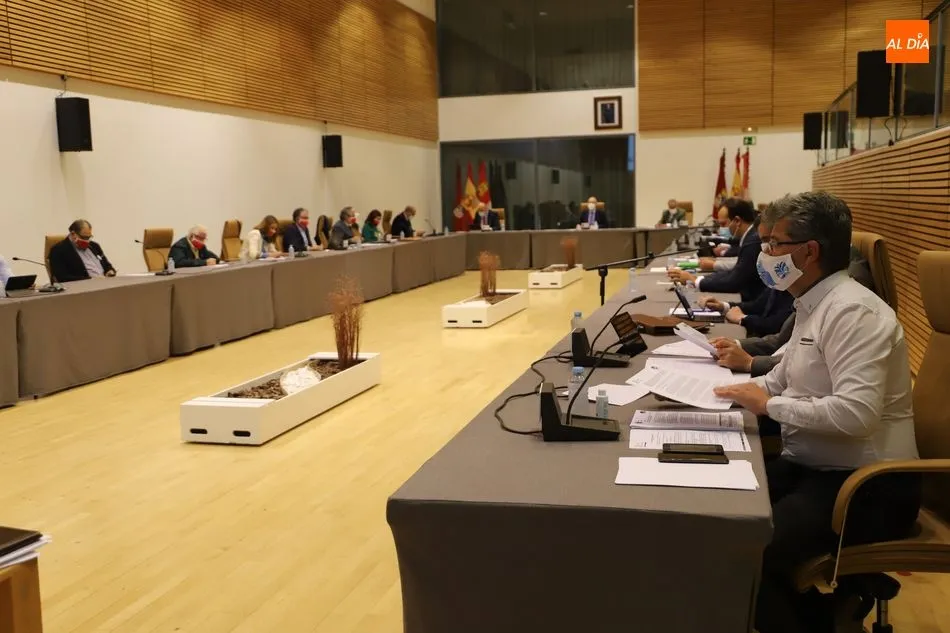 El Pleno de la Diputación de Salamanca, celebrado en una sala de ensayos del Palacio de Congresos, ha aprobado, con el apoyo de los grupos del PP y de Cs y en contra de PSOE y el diputado no adscrito, una moción para pedir al Gobierno el levantamiento de la regla de gasto, la dotación de un plan extraordinario con 5.000 millones para ayuntamientos y diputaciones, así como la participación de estas entidades locales en el fondo de rescate de la Unión Europea.