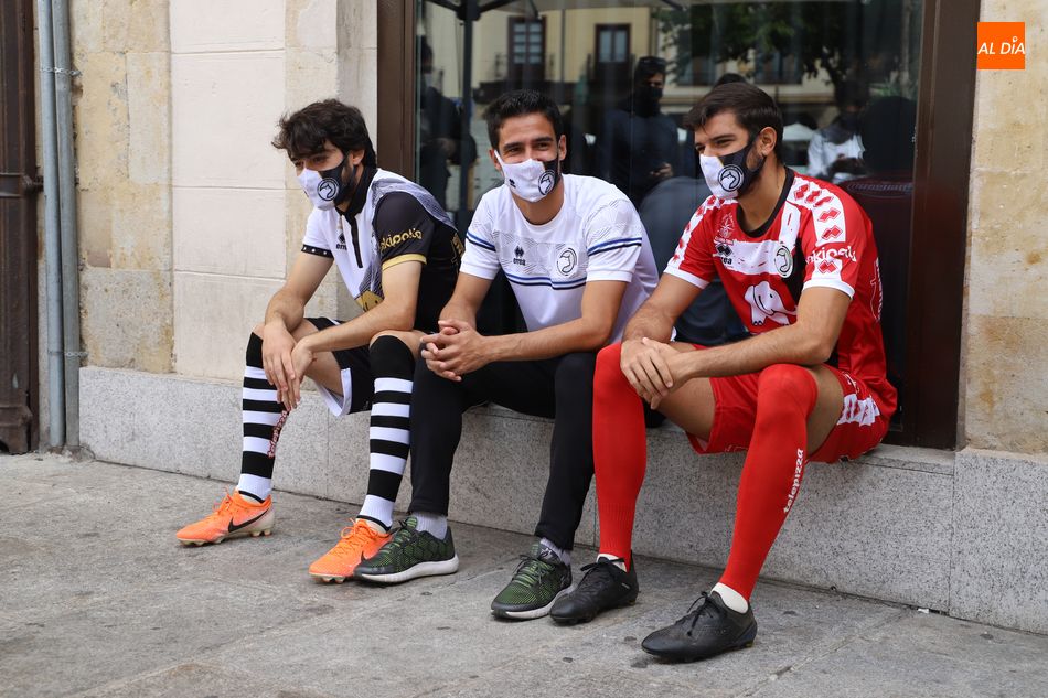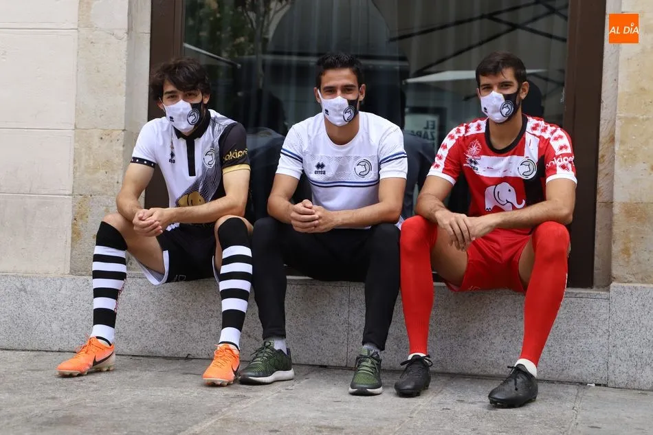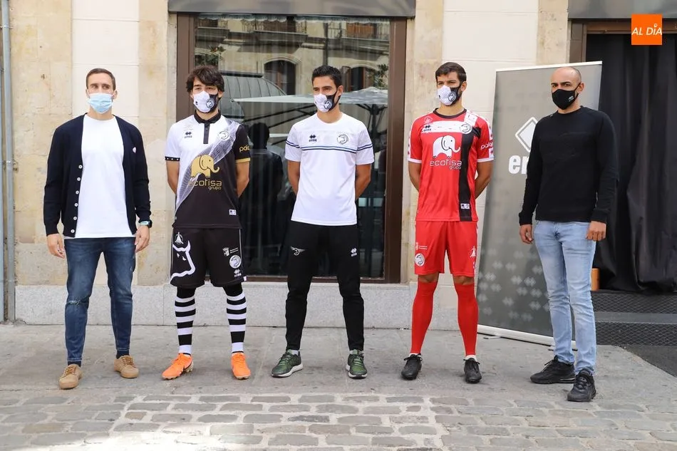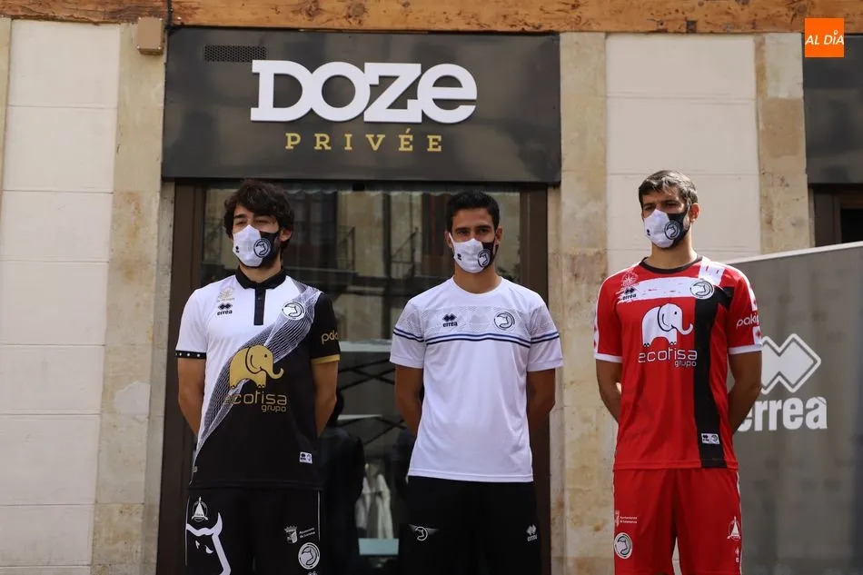 Unionistas presentó su nueva piel para la 2020/2021, cuyas equipaciones serán blanquinegra y roja para tratar de subir a la PRO. El club dio a conocer los diseños de la ropa de juego, que seguirá siendo de la marca Errea y lucen el lema ?Solo hubo una?, en referencia a la UDS, en un acto que tuvo lugar en la mañana de este jueves en Salamanca. Navas, Gallego y De la Nava ejercieron como modelos.