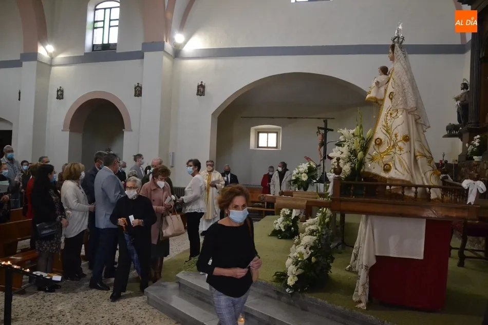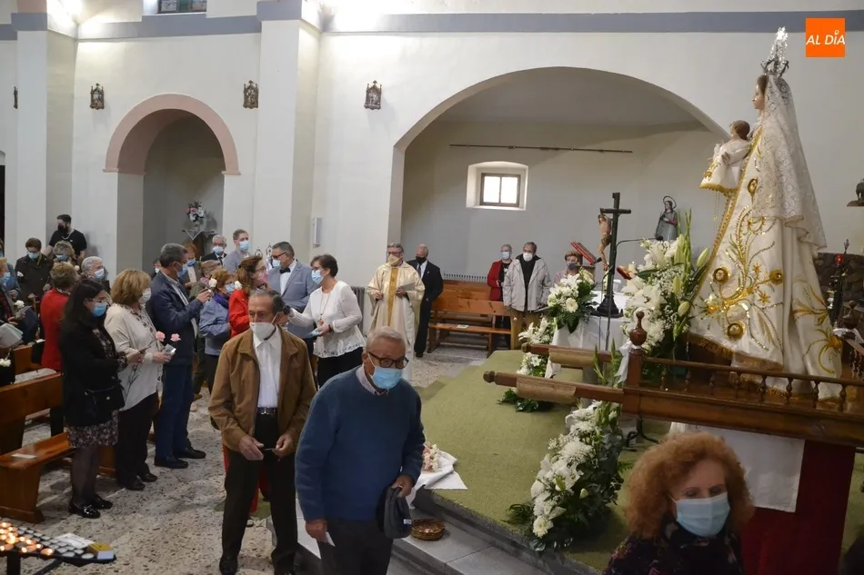 Como cada año, el Arrabal del Puente de Ciudad Rodrigo ha festejado durante este primer fin de semana del mes de octubre a su ?Reina?, la Virgen del Rosario, aunque en esta ocasión ha tenido que ser de una forma totalmente diferente a lo habitual debido a la pandemia del coronavirus. En este sentido, no ha habido ninguna celebración callejera, limitándose los actos al interior de la Parroquia de Santa Marina, que desde el pasado sábado 26 de septiembre ha venido acogiendo por las tardes la tradicional Novena en honor a la Virgen.