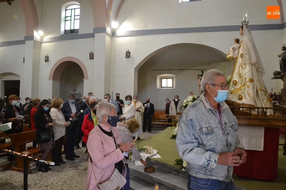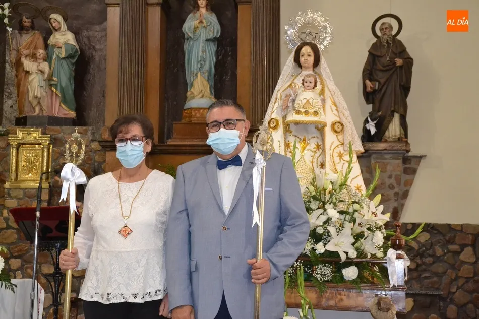En lo que respecta al día grande, la Parroquia de Santa Marina acogió a media mañana del domingo la solemne misa en honor a la Virgen, presidida por el párroco Prudencio Manchado Vicente, y con los mayordomos de este año, Tomás Domínguez Cid y Araceli Montero Matías, en el primer banco del templo portando los varales y acompañados de sus familiares. En las inmediaciones estuvo José Manuel Jerez, en su calidad de presidente de la Cofradía del Santísimo, San Antón y San Isidro de la Parroquia.