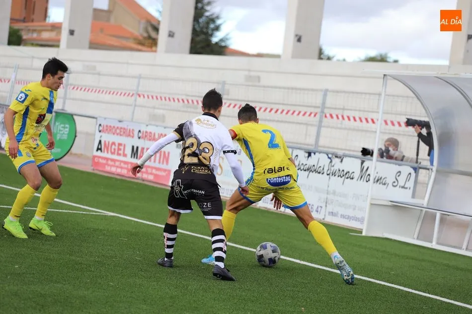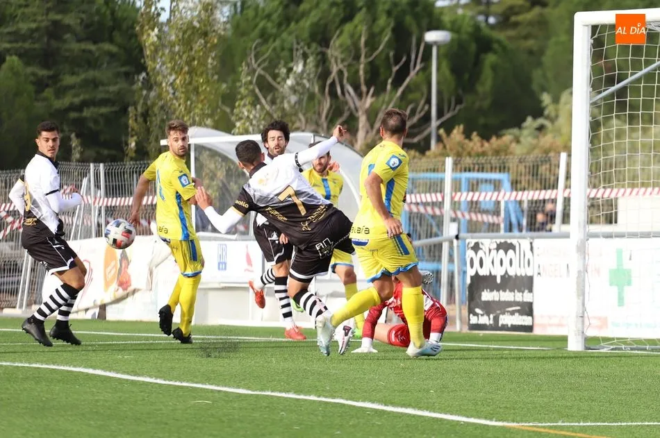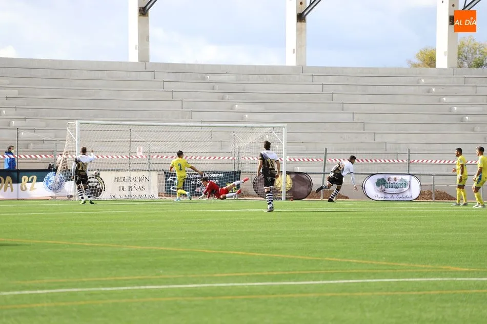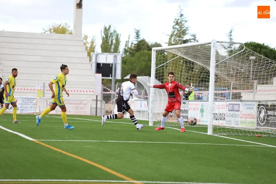 Tras ello, la Arandina trató de empezar a llegar al área local, pero poco le duró la ?alegría?. Antonio Marín remachó un balón suelto a la salida de un córneo y colocó el 2-0 a los 25 minutos de juego. De este modo, la contienda se marchó al descanso con dicho marcador y la eliminatoria bastante encarrilada para los blanquinegros, que estrenaron primera equipación.
