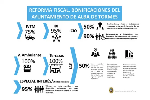 Los vecinos de Alba de Tormes podrán beneficiarse de diez bonificaciones. Es el caso de las familias numerosas, que tendrán una bonificación del 95% en el Impuesto de Bienes Inmuebles (IBI). También los vecinos de la localidad podrán obtener una reducción del 75% en el Impuesto de Vehículos de Tracción Mecánica (IVTM) en función de los motores de los vehículos y su incidencia en el medio ambiente.