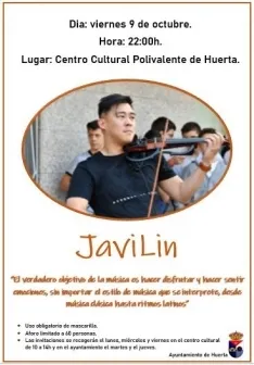 El violinista Francisco Javier Lin Chen, J Lin más conocido como Javi Lin actuará este viernes en el Centro Cultural Polivalente de Huerta.