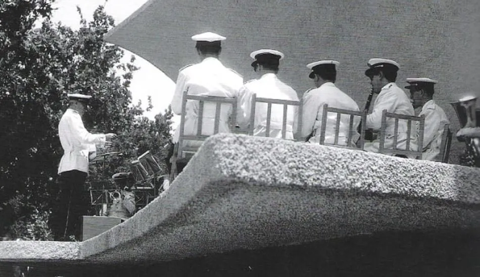 La banda municipal de música en el desaparecido templete de la alamedilla. Foto de Núñez Larraz .