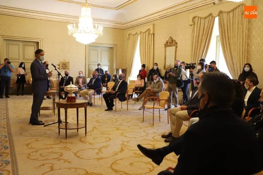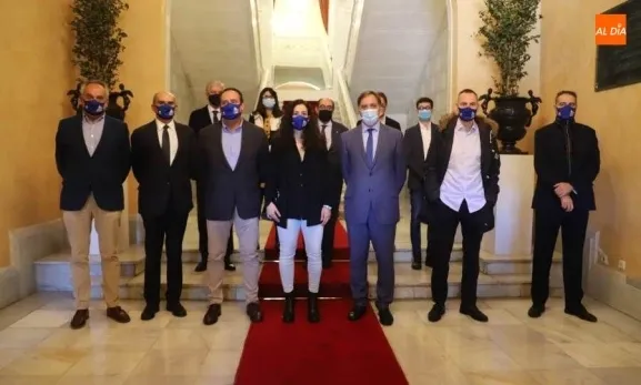 El alcalde Carbayo hizo de anfitrión del club azulón tras sumar nuevos éxitos para Salamanca