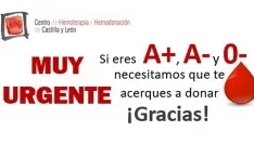 El Centro de Hemoterapia y Hemodonación de Castilla y León (Chemcyl) llama a donar de manera "muy urgente" sangre de los grupos A+, A- y 0-, según ha publicado este miércoles en su perfil de Twitter.