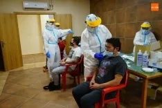 Personal del SACyL reliza las pruebas de detección del coronavirus en el albergue cedido por el Ayuntamiento
