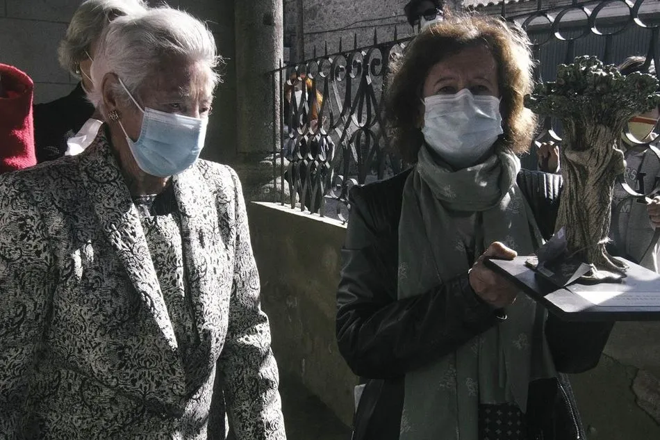 El Ayuntamiento le hizo entrega de un ramo de rosas amarillas, un obsequio y una foto suya en la iglesia