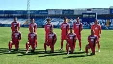 Por su parte, Hernán Pérez optó por el siguiente once para la cita: Serna; Marín, Mario, Gallego, Rojo; Navas, Acosta, Rey, Carmona; De la Nava y Aythami. El duelo arrancó con dominio local en los primeros instantes de juego, mientras que una falta botada por Navas acabó en un disparo de Rojo que despejó la zaga madrileña.