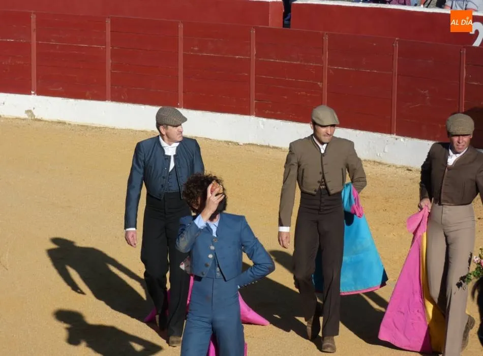 La elegancia estuvo servida en el ruedo de Villoria desde el primer momento, gracias al esmerado empeño de los jóvenes novilleros, la Escuela de Tauromaquia de Salamanca y las entidades organizadoras. Antes de comenzar se rindió unos minutos de respeto y silencio por las victimas del coronavirus. En todo momento, el cuidado por el detalle aumentó el brillo de un espectáculo al que las gentes de Villoria no están acostumbradas en un dia fuera de fiestas. La técnica, el empeño, sentimientos, valores y otra serie de alicientes enriquecieron el ritual, arte del toreo en el coso de La Vega.