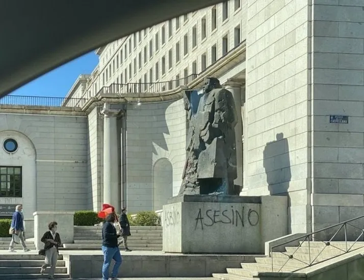 La estatua del expresidente del PSOE y ministro de la II República española Indalecio Prieto, situada en los Nuevos Ministerios de Madrid, ha amanecido esta mañana con la pintada de 'Asesino', lo mismo que le ocurrió hace unos días a la cercana estatua del expresidente del Gobierno republicano Francisco Largo Caballero.