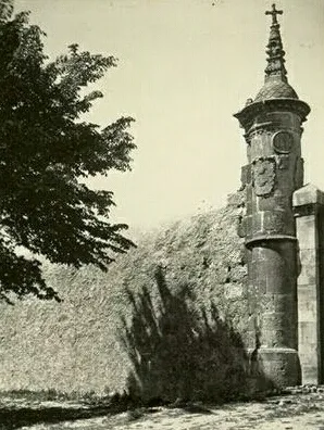CUARTA. El rollo situado en el muro del convento de las Madres Bernardas en su situación original.