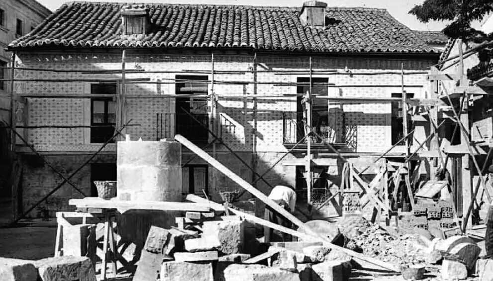 PRIMERA. El rollo situado en el muro del convento de las Madres Bernardas en su situación original.