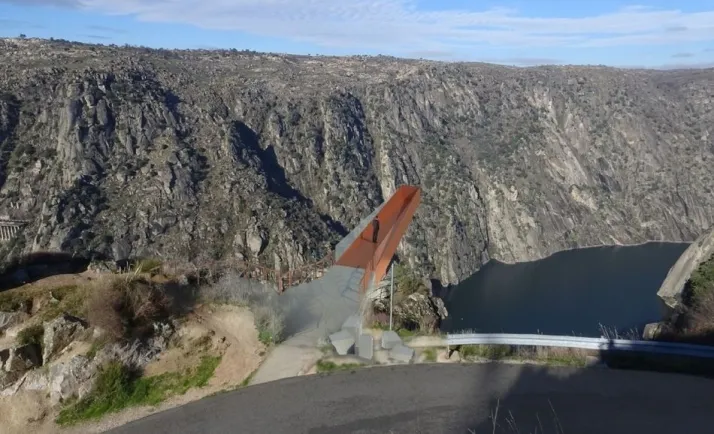 El mirador, eje central de la propuesta, se creará gracias a la plataforma de acero cortén, desde la que el visitante podrá ?alejarse del terreno firme y ampliar considerablemente su ángulo de visión sobre la presa y el valle con su impresionante desnivel, casi vertical, en algunos puntos?. Con una superficie de 24.96 m2, será accesible directamente desde la carretera existente. El vuelo contará con una longitud de 12.8 m. y permite visiones completamente nuevas por su posición sobre el precipicio.