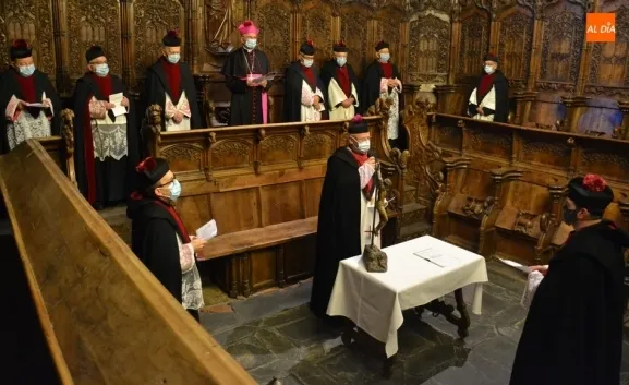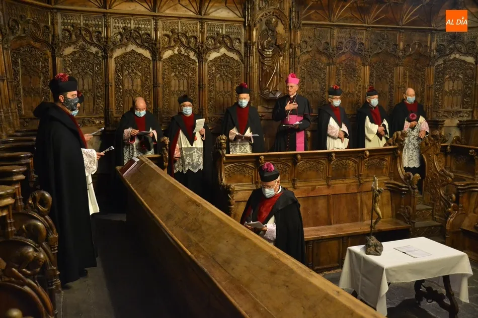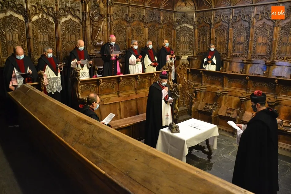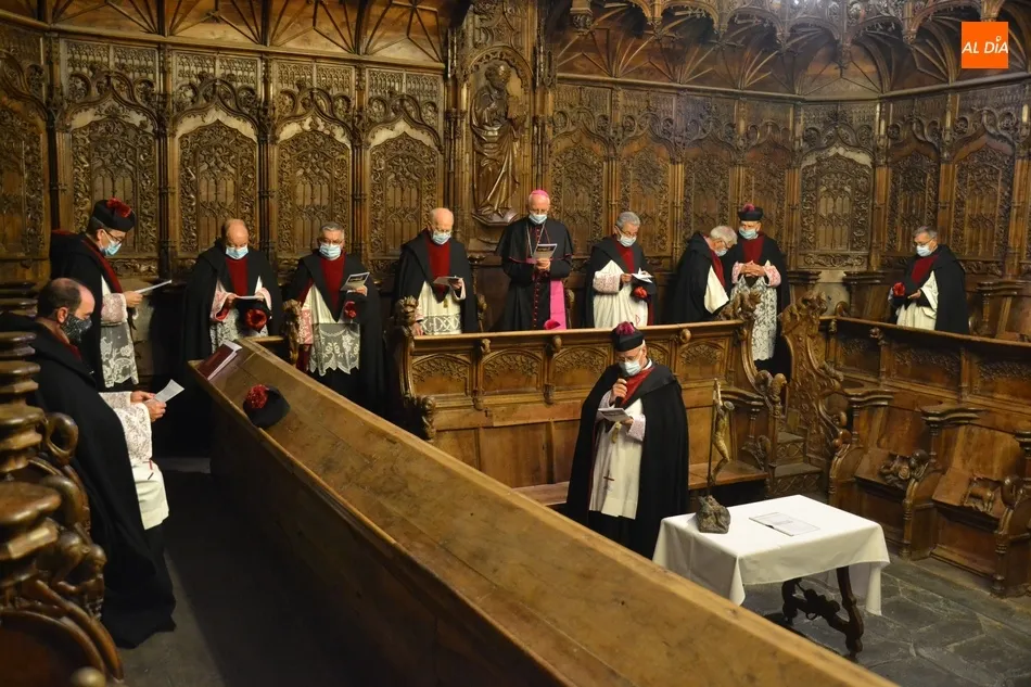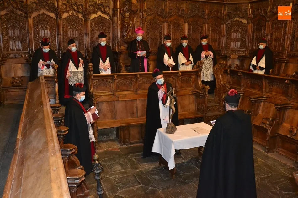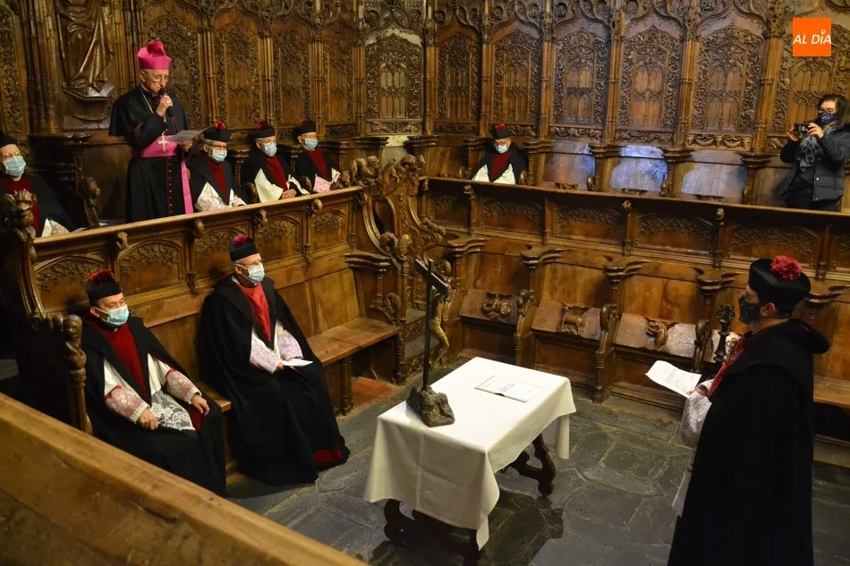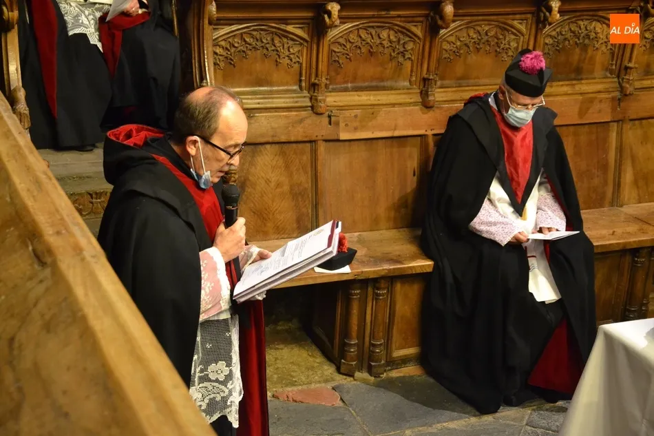 Siguiendo el ritual, los canónigos se sentaron en los lugares que tienen asignados (con Jesús García Burillo en la Silla Episcopal), excepto Ángel Martín Carballo y Rafael Caño, quiénes permanecieron en la planta baja del Coro separados por una mesa con un crucifijo y los Estatutos Capitulares, sobre los cuales el nuevo canónigo de la Catedral prestó juramento, una vez se dio lectura al nombramiento por parte del secretario capitular, Tomás Muñoz Porras (que en el inicio también se situó en la parte baja).