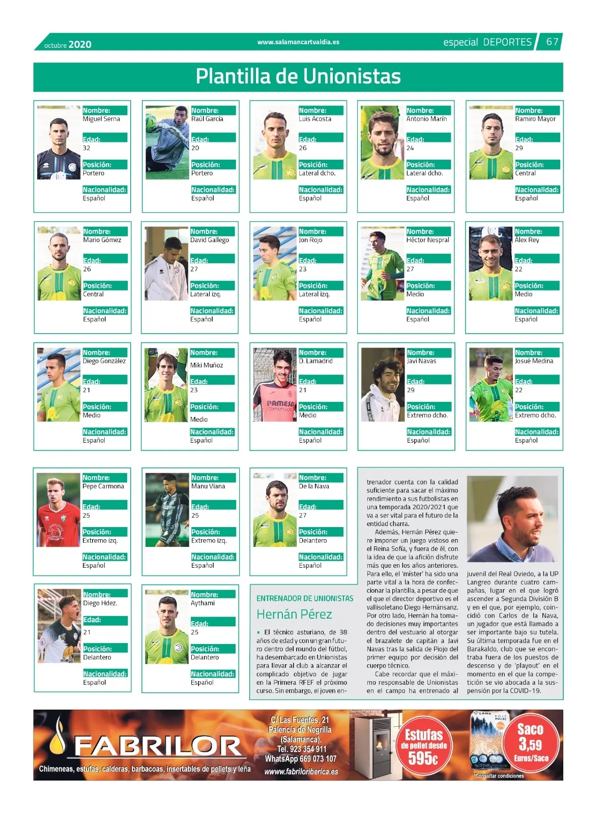 Para ello, los socios de Unionistas han puesto mucho de su parte, y especialmente de su bolsillo, para ayudar a la entidad en momentos tan complicados como los que se están viviendo en todo el mundo desde el pasado mes de marzo. Mientras, la directiva ha apostado ?en un verano muy movido? por Diego Hernánsanz como director deportivo, que ha prescindido de Jabi Luaces, el técnico que ha llevado a Unionistas a poner contra las cuerdas al Real Madrid, el equipo más laureado de la historia del fútbol, en una eliminatoria de Copa del Rey que tuvo lugar en enero de este mismo año en Las Pistas, para hacer ?un proyecto lo más ganador posible?.