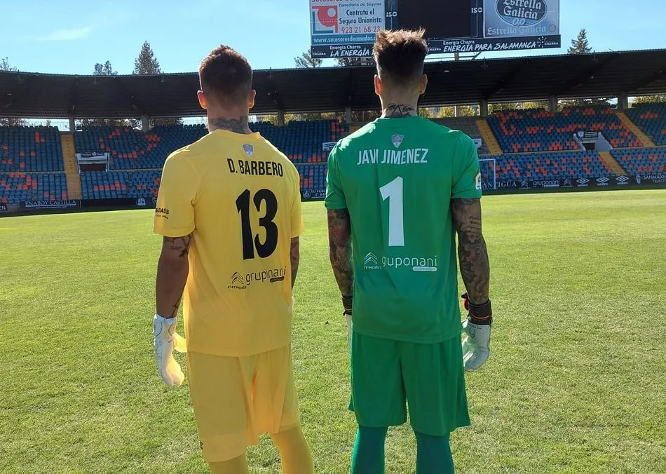 Los guardametas del Salamanca UDS han presentado las diferentes equipaciones que llevarán durante la presente campaña. Colores llamativos amarillo y verde son los que lucirán Dani Barbero y Javi Jiménez, además del morado.