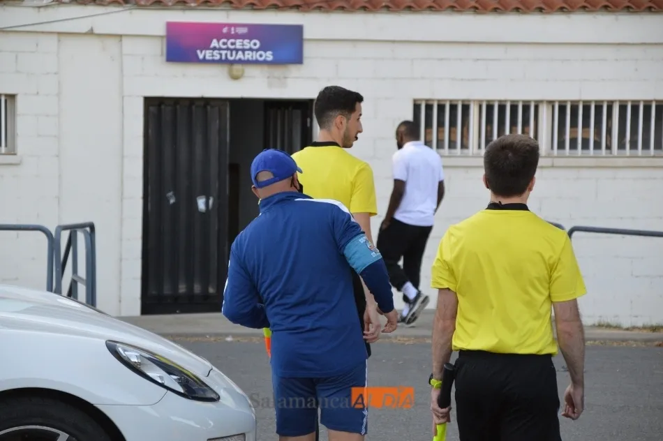 El fútbol en plena pandemia del coronavirus sigue dejándonos imágenes muy llamativas cada poco tiempo. En este mismo fin de semana, el duelo de la primera jornada de Liga (Tercera División) entre el Salamanca UDS ?B? y el Cristo Atlético nos dejó una más, puesto que el filial blanquinegro se marchó al descanso de Las Pistas al vestuario del Helmántico.