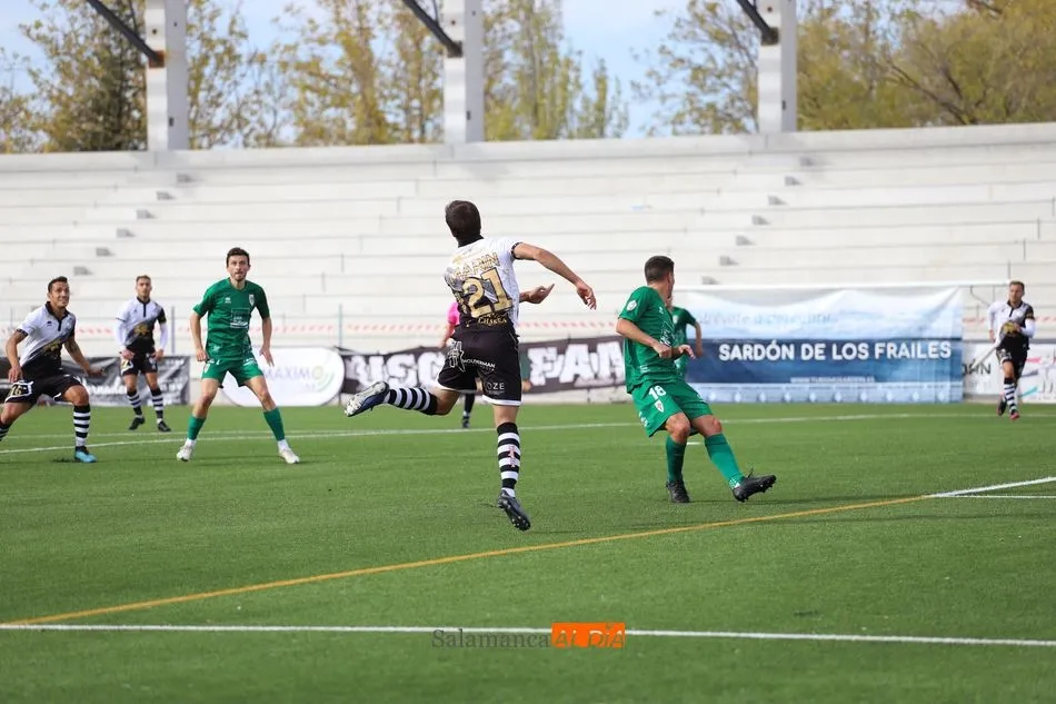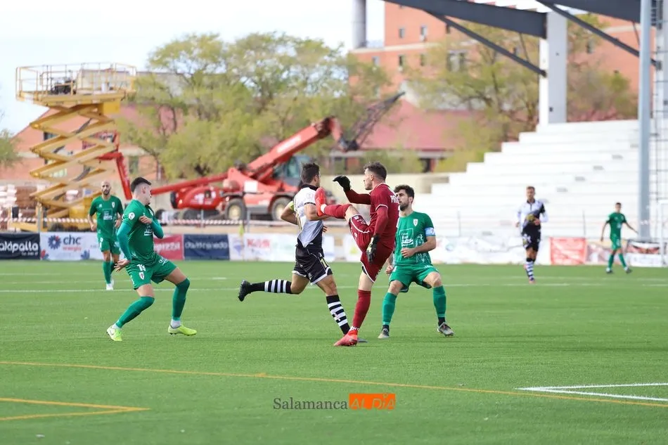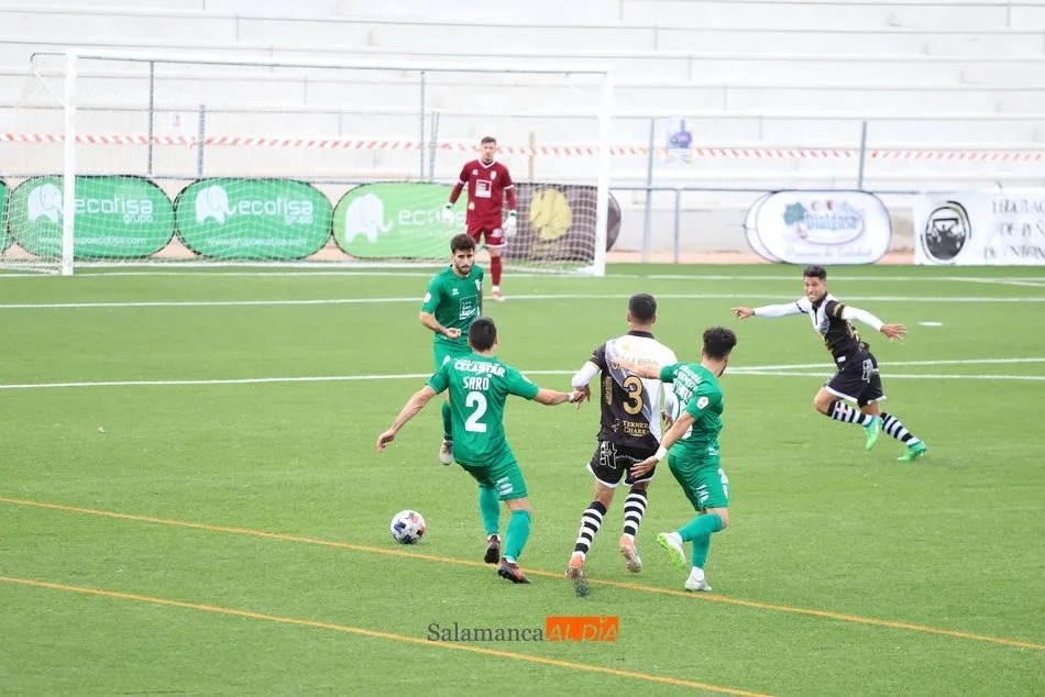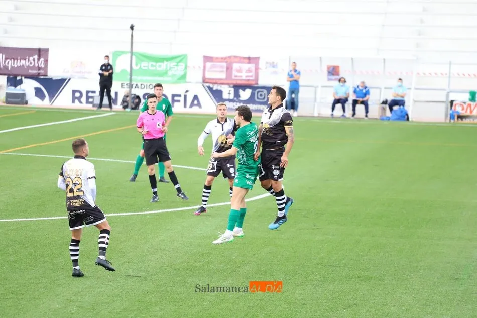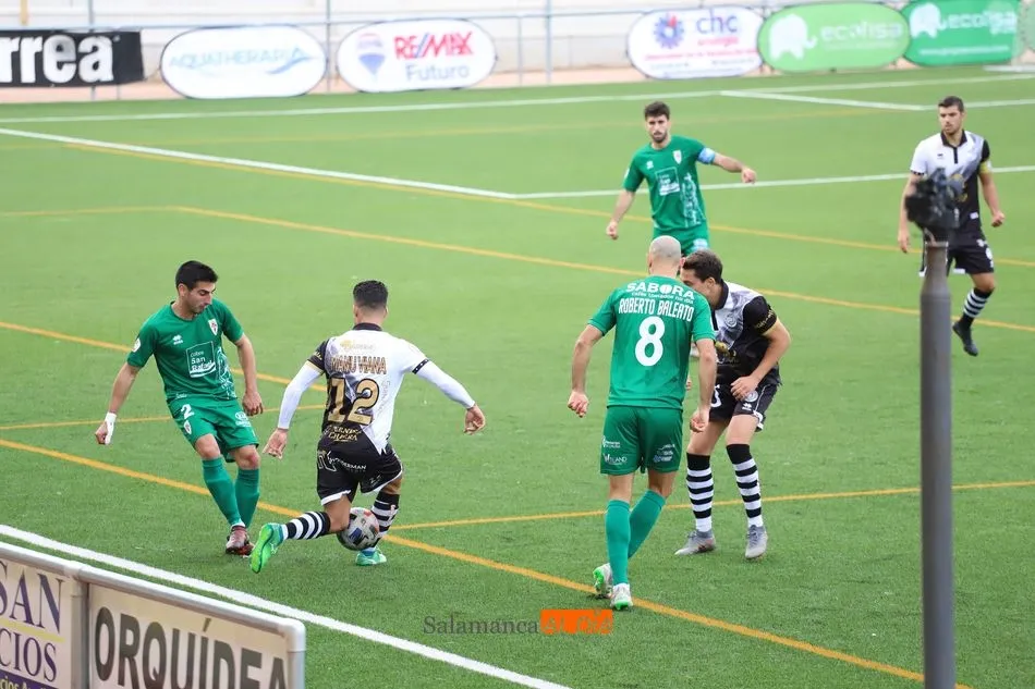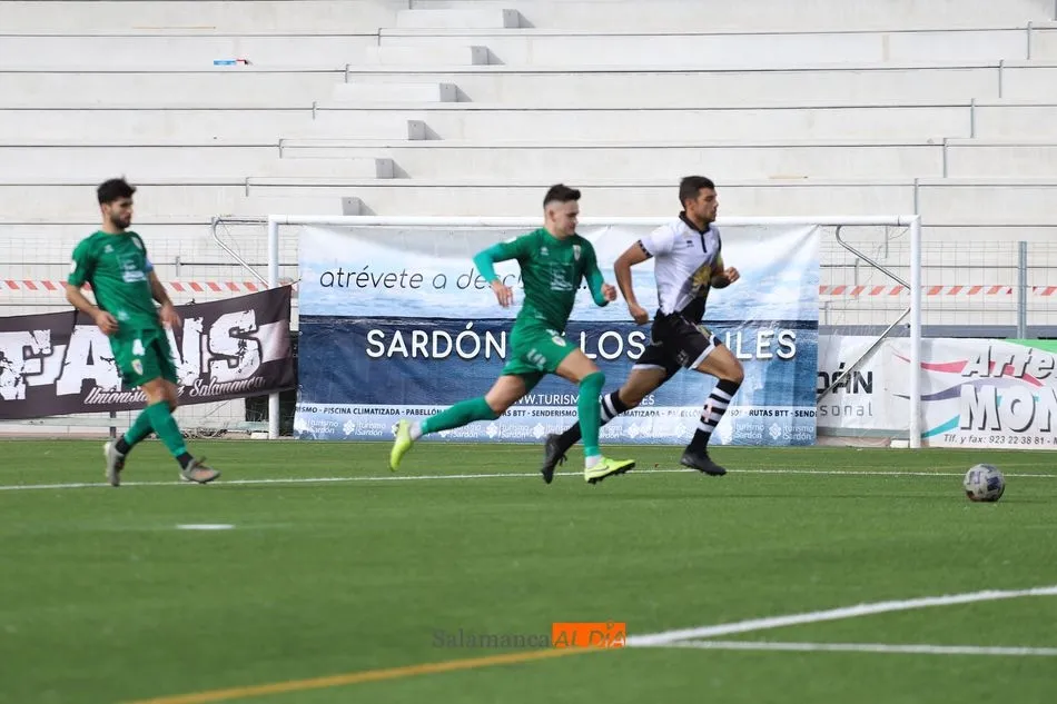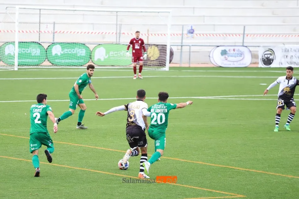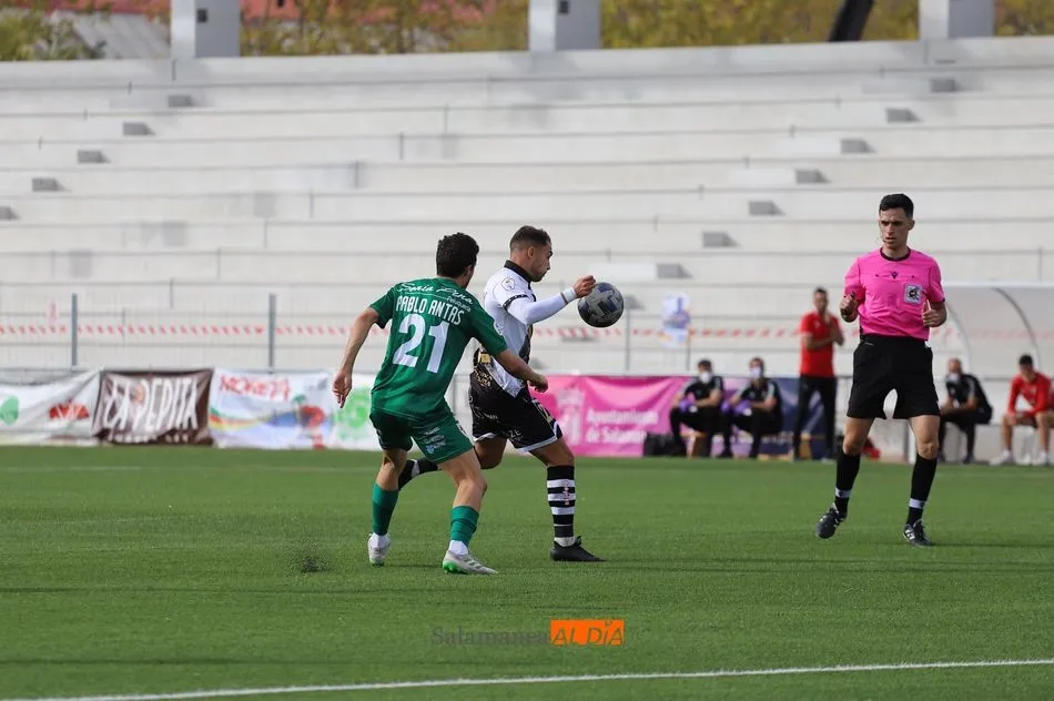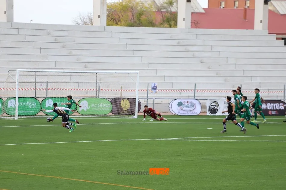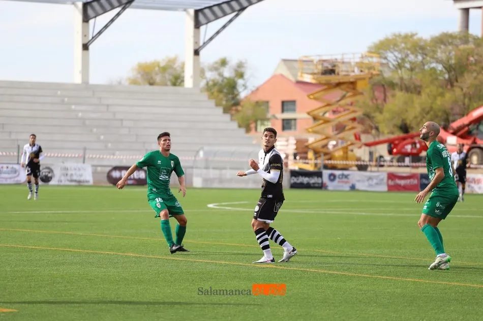 Tras la reanudación, Hernán Pérez retiró a Josué Medina para dar entrada a Manu Viana, que tuvo una presentación bastante complicada al confundir a Unionistas con la UDS y que intercambió su puesto con Carmona en el costado zurdo. De este modo, los ex de Las Pistas salieron al verde con una marcha más que su rival y poco tardó en traducirse en ocasiones. Álex Rey marró un disparo desde la frontal y en la jugada siguiente, Saro tuvo que emplearse a fondo para despejar un esférico que se colaba en su portería.