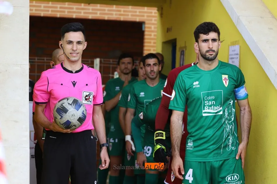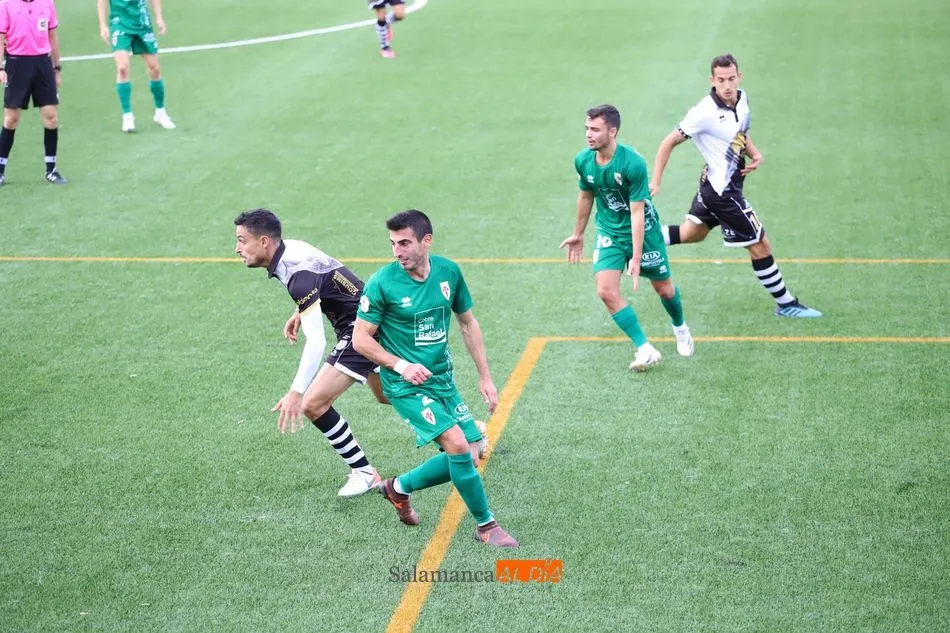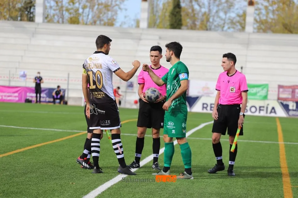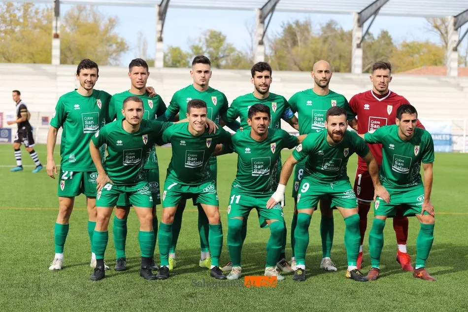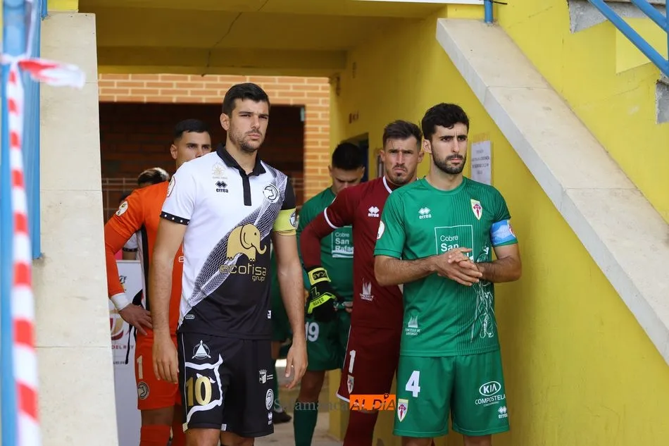 Por su parte, Hernán Pérez decidió introducir una gran novedad en el once con respecto a lo visto en los amistosos, ya que quiso premiar a Josué Medina, que logró el tanto que significó el pase a los octavos de final de la Copa Federación contra el Móstoles el pasado fin de semana, y sentó al capitán Javi Navas. Además, cabe destacar que el charro Diego González fue el único descarte de un técnico asturiano que apostó por el 4-4-2 para tratar de hacer daño por banda a la escuadra gallega, pero el peso del duelo en los primeros instantes fue de color verde, segunda equipación del ?Compos?.