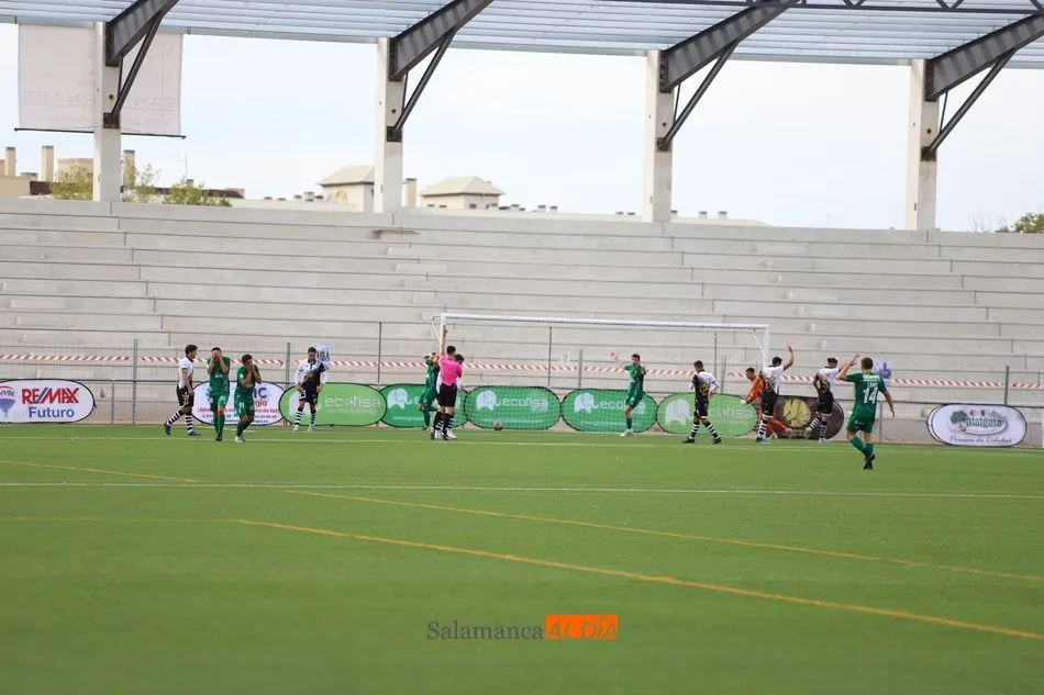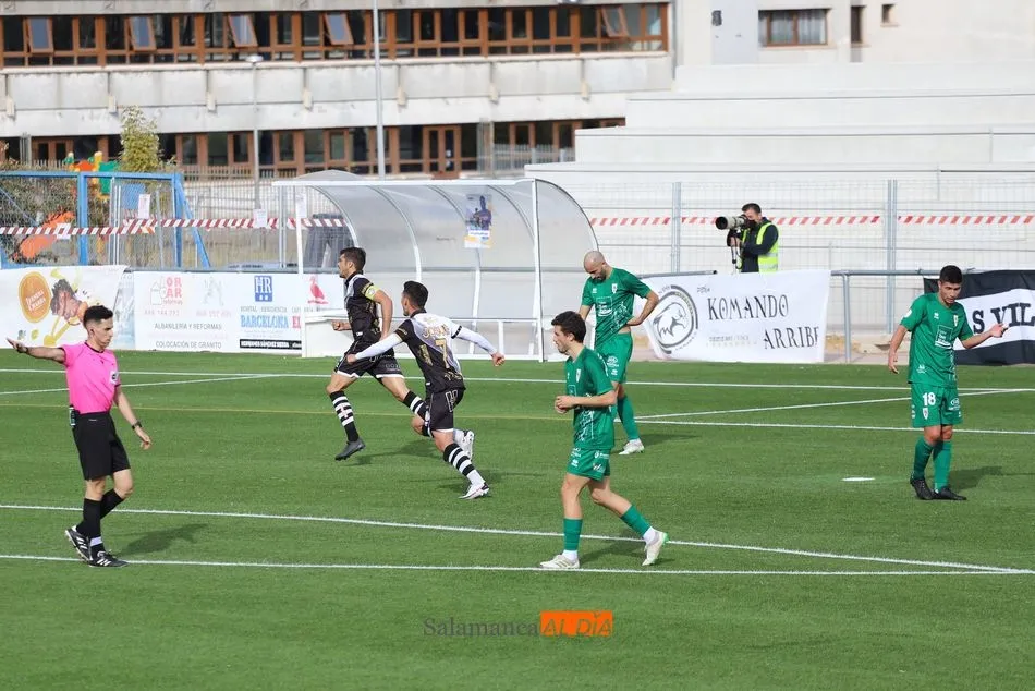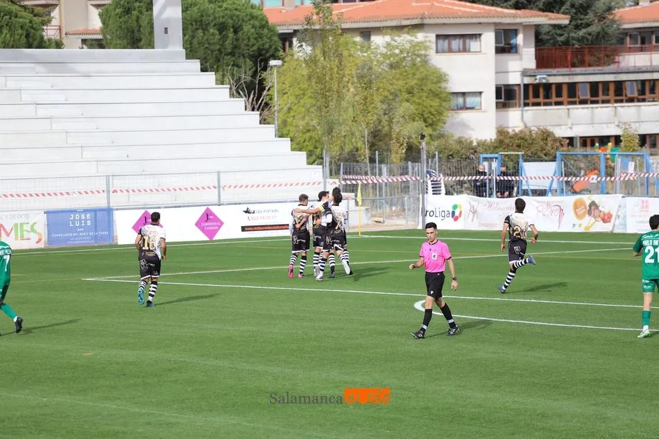 Por otro lado, un buen despeje de cabeza de Mario Gómez a una jugada llena de colmillo de Brais precedió al primer tanto de la temporada en Salamanca, en el que los laterales fueron determinantes. Marín disparó cruzado de manera defectuosa y Jon Rojo cazó el balón dentro del área para enviarlo al fondo de la red. 1-0 y los jugadores hicieron una piña para dedicárselo, como ya es tradición desde hace siete cursos, a la extinta Unión Deportiva Salamanca.