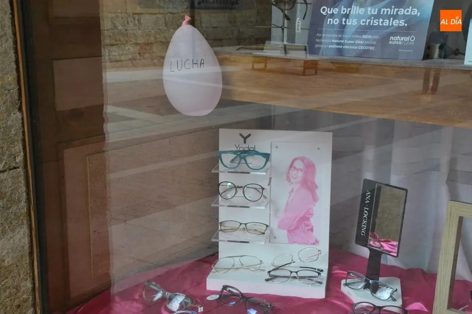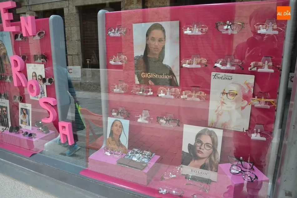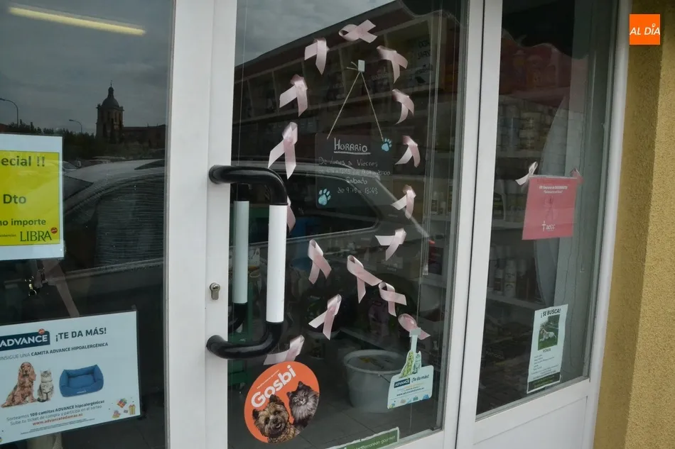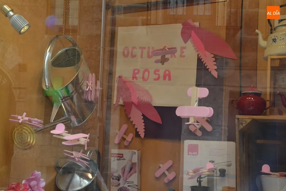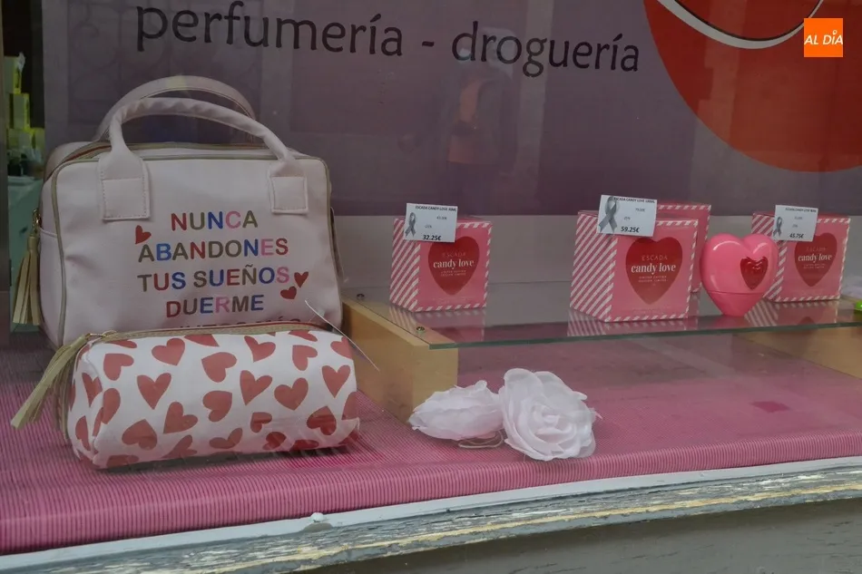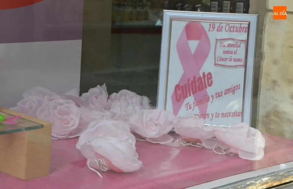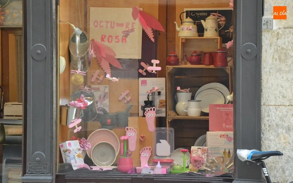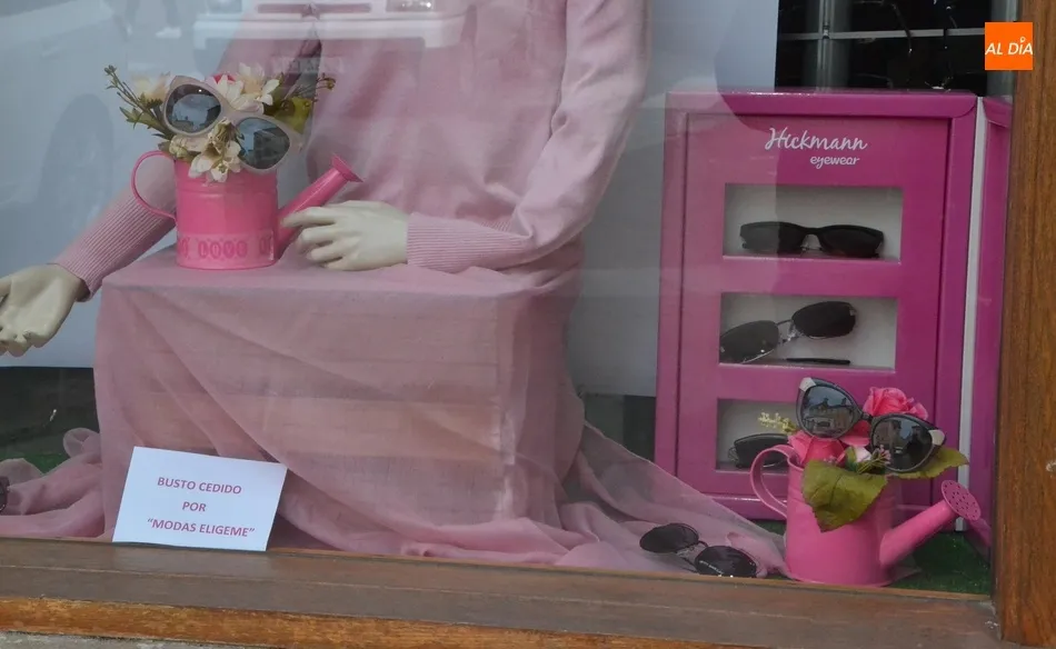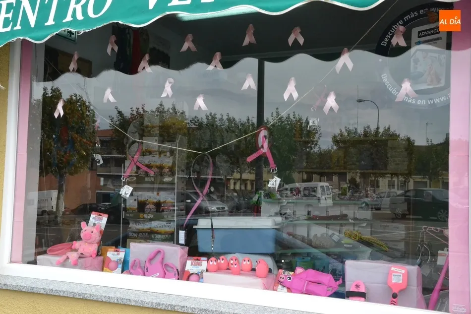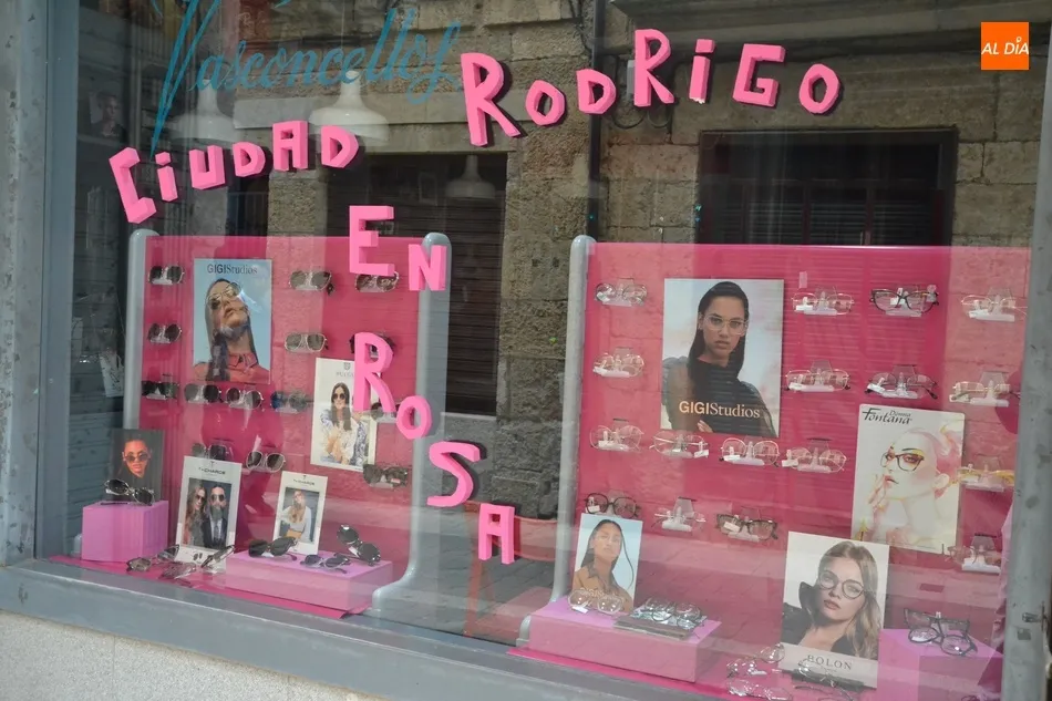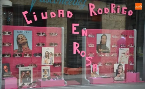 El sector comercial de Ciudad Rodrigo se ha unido un año más al Día Internacional contra el Cáncer de Mama, vistiendo de rosa unos cuantos de sus escaparates, no sólo para este lunes 19 en el que aparece la conmemoración en el calendario, sino desde hace unos cuantos días.