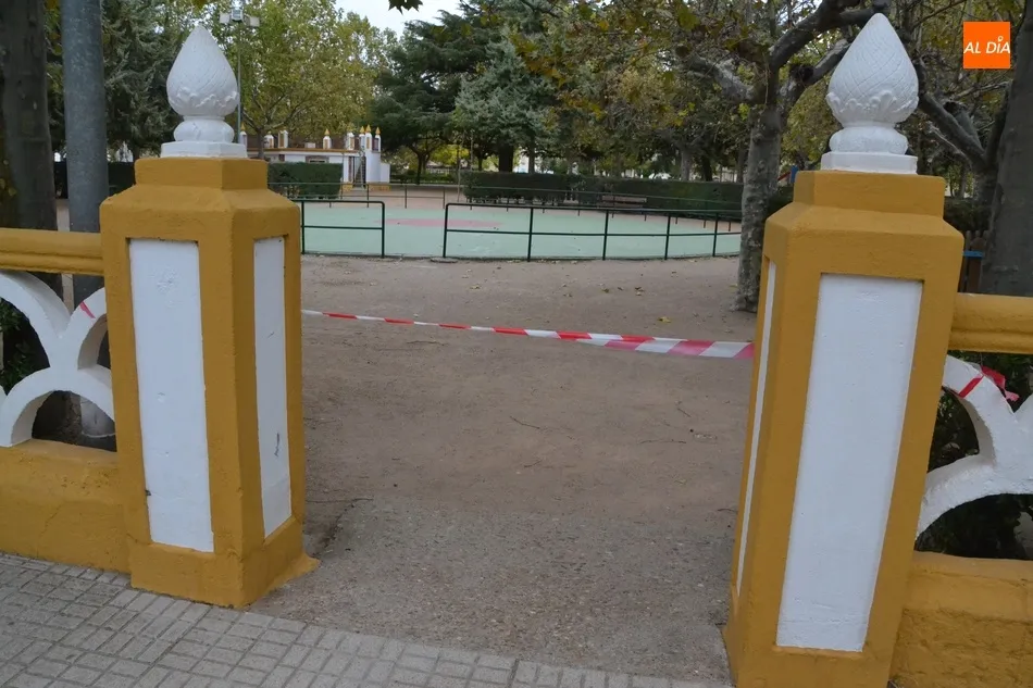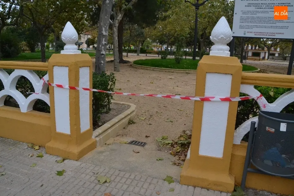 Los agentes de servicio de la Policía Local de Ciudad Rodrigo procedieron a precintar durante la tarde del lunes los dos parques más emblemáticos de la ciudad, los de La Glorieta y La Florida, ante el riesgo que entrañaba para los ciudadanos el tránsito o estancia en los mismos ante el fuerte viento que había empezado a soplar durante la mañana, que puede provocar la caída de ramas de árboles como ha ocurrido en anteriores ocasiones.