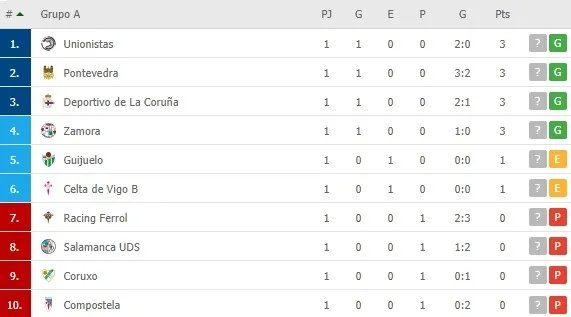 Mientras, el gran golpe se lo llevó un buen Salamanca UDS que vio cómo Eneko Bóveda y el Deportivo de La Coruña se hicieron el triunfo en el minuto 96 de juego de un encuentro muy disputado en Riazor por 2-1. Por ello, los de Sergio Egea quedaron mal parados al ser el octavo clasificado al término de la primera fecha del calendario.