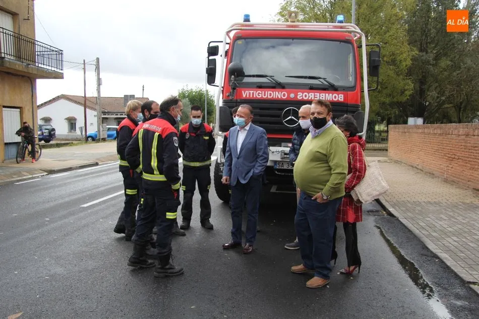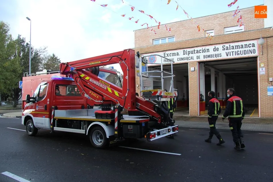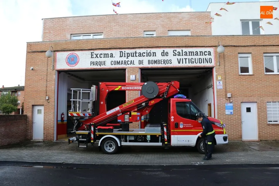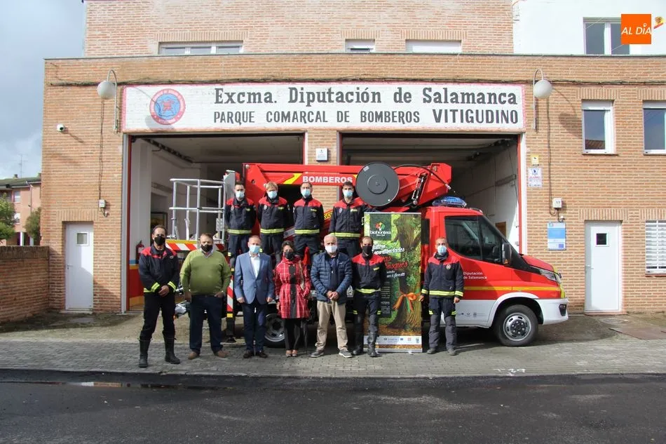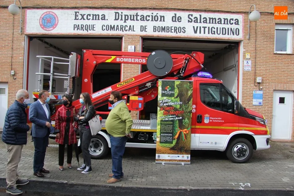El diputado provincial de Bomberos, Román Hernández, hacía entrega este miércoles al Parque de Bomberos de Vitigudino de un nuevo camión para trabajos en altura, vehículo cuyo coste ha superado los 120.000 euros y que han sido financiados a través del proyecto Biofrontera II, incluido en el programa Interreg de fondos europeos.
