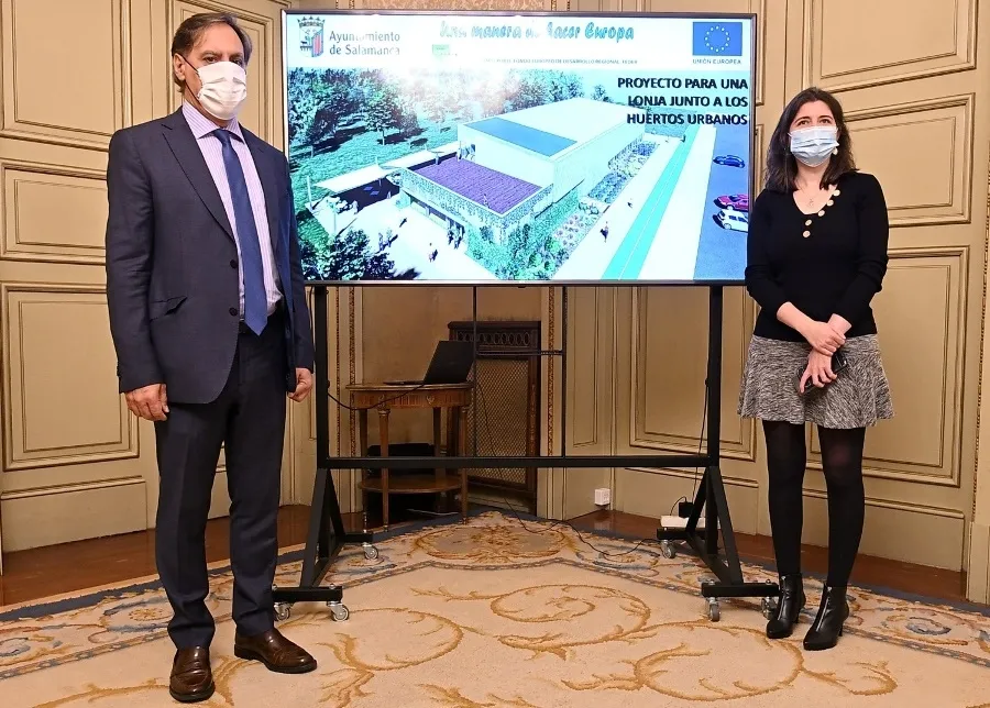 El alcalde de Salamanca, Carlos García Carbayo, ha presentado hoy el proyecto para la construcción de una lonja agroalimentaria junto a los más de 600 huertos urbanos ecológicos que el Ayuntamiento construye en Salas Bajas, entre los barrios Chamberí y Tejares, dentro de un gran parque de más de 100.000 metros cuadrados en el entorno de la ribera del río Tormes.Salamanca tendrá una lonja para mercados hortofrutícolas, artesanales, ferias gastronómicas y... | Imagen 1