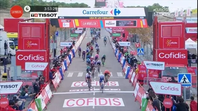 Sam Bennett se impuso al sprint en un apretado final de la cuarta etapa de La Vuelta a España 2020. El corredor del Quick Step logró el triunfo en los últimos metros tras adelantar a Jasper Philipsen.
