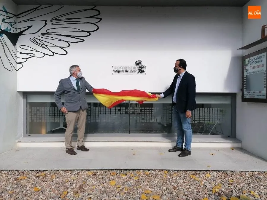 El alcalde, David Mingo, y el concejal de Cultura, Francisco Miguel García, junto al director de la Fundación Delibes, Fermando Zamácola, han inaugurado en el Centro de Interpretación de la Isla del Soto, la muestra `Miguel Delibes y la Naturaleza´. Un acto en el que también se descubría la placa que da nombre a la citada sala de exposiciones, que queda dedicada al escritor.
