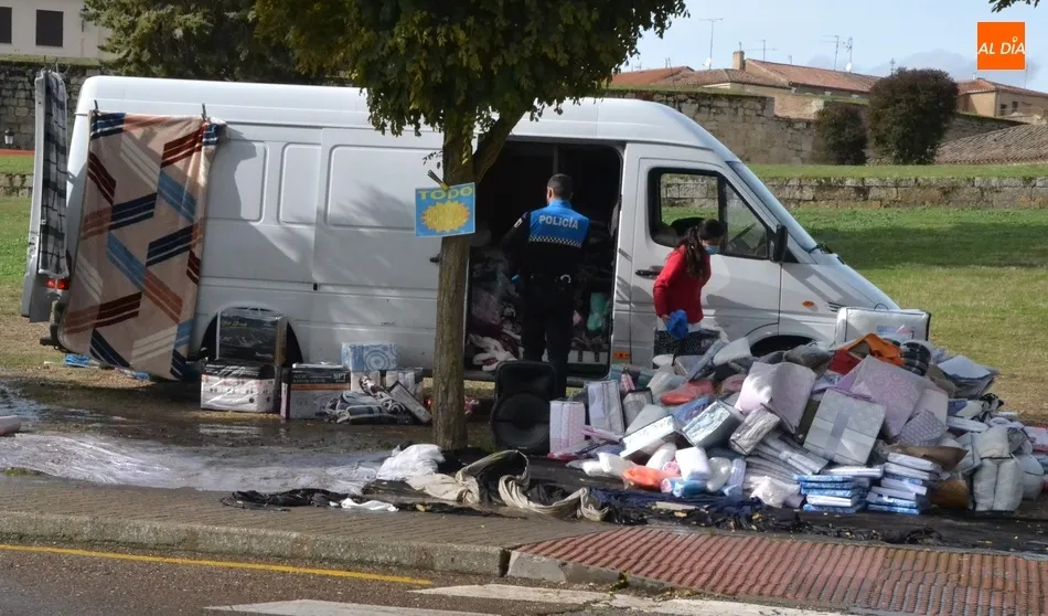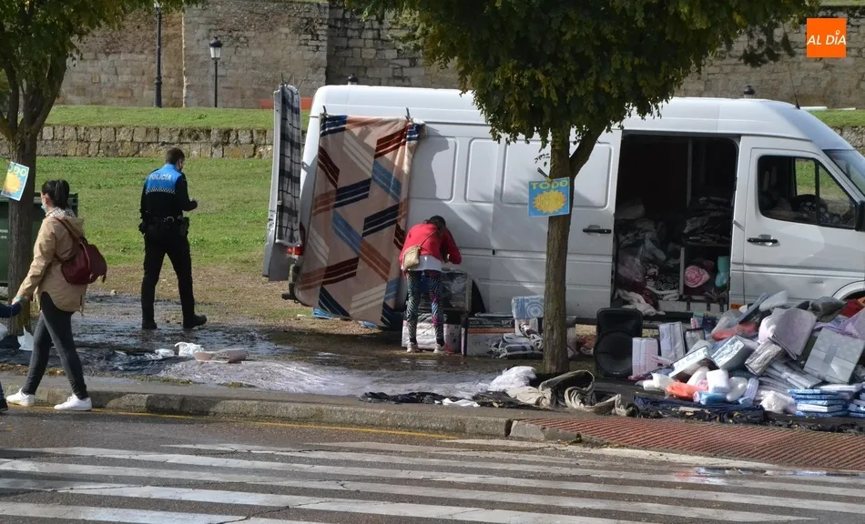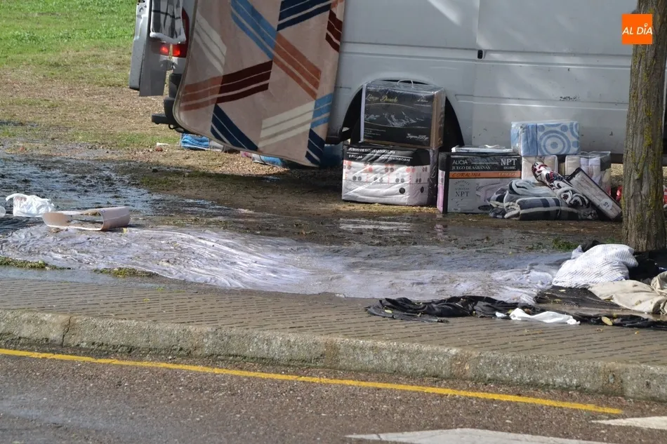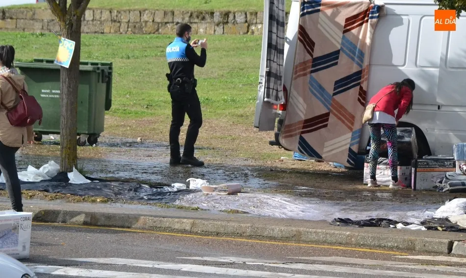 Como si no hubiera semana para romperse, la incidencia fue a producirse justo en el ecuador de la mañana de mercadillo, pasados unos minutos del mediodía, en los metros finales de la Rúa del Sol (a punto de llegar a la Avenida Conde de Foxá). El incidente afectó únicamente a uno de los puestos del mercadillo, pero eso sí, muy notablemente, mojándose buena parte de su mercancía, consistente principalmente en sábanas y edredones, que al menos estaban protegidos en envoltorios.