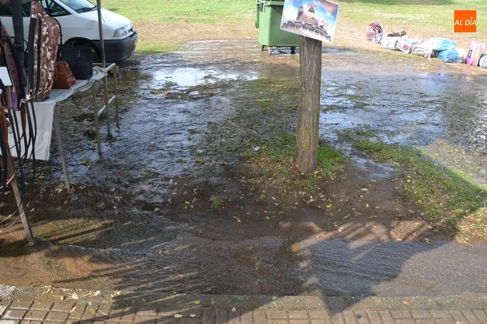 Continuando con un año de lo más complicado debido a las interrupciones obligadas por el coronavirus y al cambio de ubicación, el tradicional mercadillo sabatino de Ciudad Rodrigo se vio sobresaltado en su sesión de esta semana por el inesperado reventón de una tubería de agua en la conocida como parte alta de los pinos.