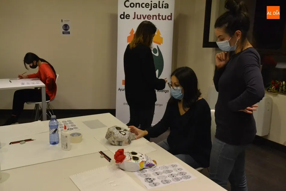 La actividad de apertura del Centro Joven en la tarde del viernes ?que se completará este sábado antes de esa Parada del Terror- fue un taller de creación de máscaras catrinas, asociadas al Día de los Muertos en la cultura mexicana. Varias chicas toman parte en el mismo, teniendo la oportunidad de mostrar su creatividad a partir de diversos modelos.